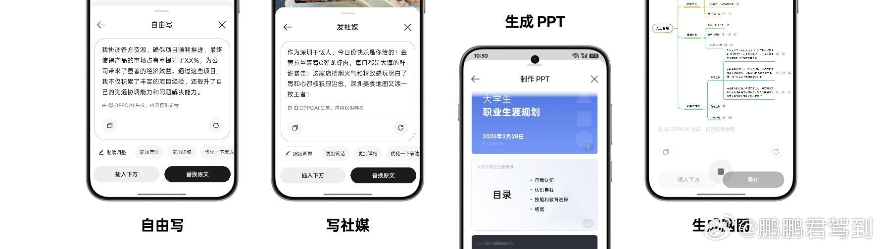 AI笔记助手升级为「全局AI写作」,不仅能写文案,还能将文案一键生成PPT和脑图。此外,还提供「AI帮回复」功能,自动识别和分析上下文对话,给出高情商回复话术。