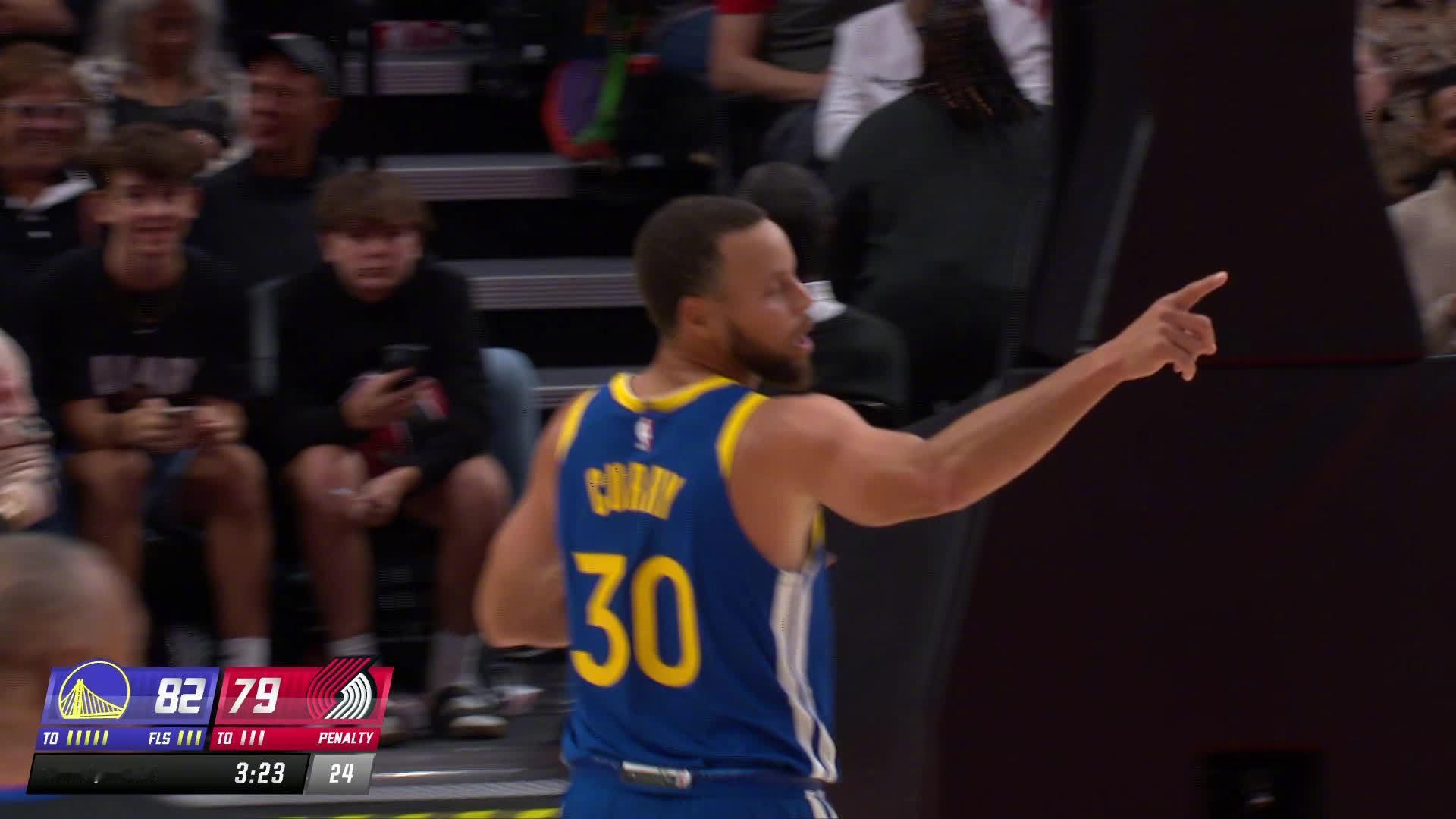 佩顿二世命中第三节压哨三分!勇士vs开拓者