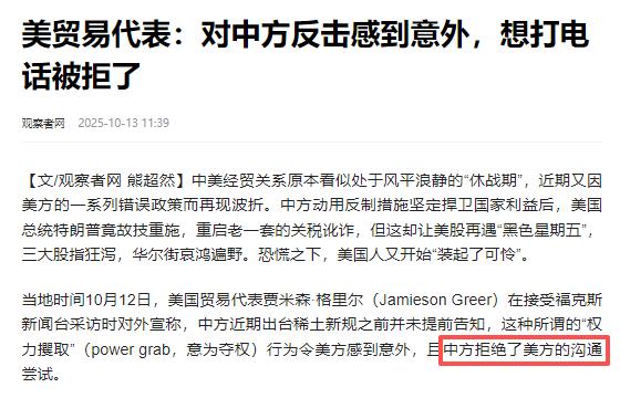 美贸易代表:中国已拒绝通话,万斯给中国两个选择:要么取消稀土管制,要么美动用所有筹码 大家怎么看,一起评论区唠唠! 10月12日,美国副总统万斯突然放话,给中国摆出了两个选择:要么取消刚刚实施的稀土管制,要么美国就动用“所有筹码”来对付,可这一通牒好似一下子让人看出他们着急了,因为这不单单是贸易上的博弈,背后是对稀土资源的严重依赖。 别看万斯说得那么气吞万里,实际上他的话里或许充满了焦虑。 要知道,美国的稀土需求,尤其是在军工和高科技领域,几乎都离不开中国的稀土,从F-35战斗机到核潜艇,每一项高端装备的核心部件都需要稀土材料,更别说电动车、手机、芯片这些对稀土依赖巨大的产业了。 美国自己没有足够的加工能力,想从别的地方采购精炼的稀土几乎不可能,根本无法替代中国在这一领域的主导地位。 这也就解释了为什么万斯的话听起来很有威胁,但美国的“筹码”其实早已耗尽。 过去几年,美国采取了各种手段:加关税、列实体清单、打压中国企业——这些招数都用得差不多了,威慑力逐渐减弱。 而美国根本没有能够立刻替代中国的稀土供应链的能力,实际上它的“筹码”几乎成了虚张声势。 如今中国的稀土管制新规出台后,全球产业链格局瞬间被打破,这次的管制措施并不是单纯的限制原矿,而是涵盖了从稀土矿石到加工产品、技术服务等整个产业链。 中国把这一管控手段提升到全产业链的层面,意味着即便其他国家想绕开中国也几乎不可能,而美国每年80%的稀土需求,都得依赖中国的供应——无论是原料还是加工。 而美国在稀土加工技术上根本没优势,整个世界的稀土冶炼分离产能92%集中在中国,美国的矿产地虽多,但技术和能力却远远不够。 说到底,美国之所以敢“放狠话”,是因为它已经在这一领域陷入了依赖的困境,万斯的两项选择就像是在自保,表面上看着强硬,实际背后却暴露了美国对中国稀土依赖的深层焦虑。 还值得说的是,美国的强硬姿态并没有影响到中国的立场,反而激起了中国更坚定的回应,中国拒绝了美国的通话请求,并且明确表示不会在威胁下妥协。 大家可能会想,为什么中国不想沟通?其实,根本原因就是美国的双重标准,美国一方面提出希望中国解除稀土管制,另一方面却没有提到自己对中国科技企业的打压,中国又怎么能接受这种“单方面要求”呢? 中国的稀土管制其实是为了维护国家安全,完全符合国际惯例,稀土作为中国的战略资源,中国有权决定如何管理、如何使用,这本身并没有任何不正当的地方。 中国并没有主动挑起争端,只是为了防止美国不断限制中国的高科技产业和军工发展,才出台了这样的管制政策。 而且,这也是对美国无理制裁的一种回应,美国把中国企业从全球技术供应链中排除,甚至限制中国获得高端芯片设备,却要求中国继续让步,显然不合道理。 至于万斯所谓的“全部筹码”,美国根本没有什么新招,过去几年的制裁手段基本已经用尽,包括加税、列入实体清单等,短期内不可能产生太大效果。 而即便美国真要扩大制裁范围,效果也不会像它想的那样好,比如,虽然美国积极寻求通过澳大利亚和非洲来替代中国的稀土供应,但这些国家的稀土资源和加工能力都远远无法满足美国的需求。 更加复杂的是,美国自己也知道这一点,其国内的稀土储备早已接近枯竭,而且美国并没有独立的稀土冶炼能力,任何开采的矿石都必须依赖中国的加工技术。 即便是美国本土最大的稀土矿——加州的芒廷帕斯矿,虽然储量大,但也必须把矿石运往亚洲进行提炼,这就是美国在稀土领域的真正短板:矿产资源虽多,但没有能力对这些资源进行有效的深加工和提炼。 实际上,中国的这一次稀土管制,已经把全球稀土产业链的“命脉”牢牢把控,美国的军工巨头、科技公司纷纷感受到压力,生产成本上涨,交货周期延长。 而美国自己根本无法在短期内摆脱对中国稀土的依赖,未来10到15年内也难以看到替代方案。 中国拒绝通话、坚决维护自身利益,不仅仅是为了对抗美国的压力,也是为了保护自己的资源和产业链,中国并不想和美国做敌人,但如果美国硬要逼迫,最终吃亏的只能是美国自己。 这个局势或许已经让全世界看清,真正的产业话语权,掌握在那些能控制核心资源和技术的国家手里。 随着全球对稀土和高科技产业链依赖的加深,未来的稀土博弈,注定是一个长久的战略游戏,而美国的“筹码”早已失去了威力。 对此,大家有什么想说的呢?欢迎在评论区踊跃留言!麻烦看官老爷们阅读后点赞关注,谢谢! (个人观点,理性观看)