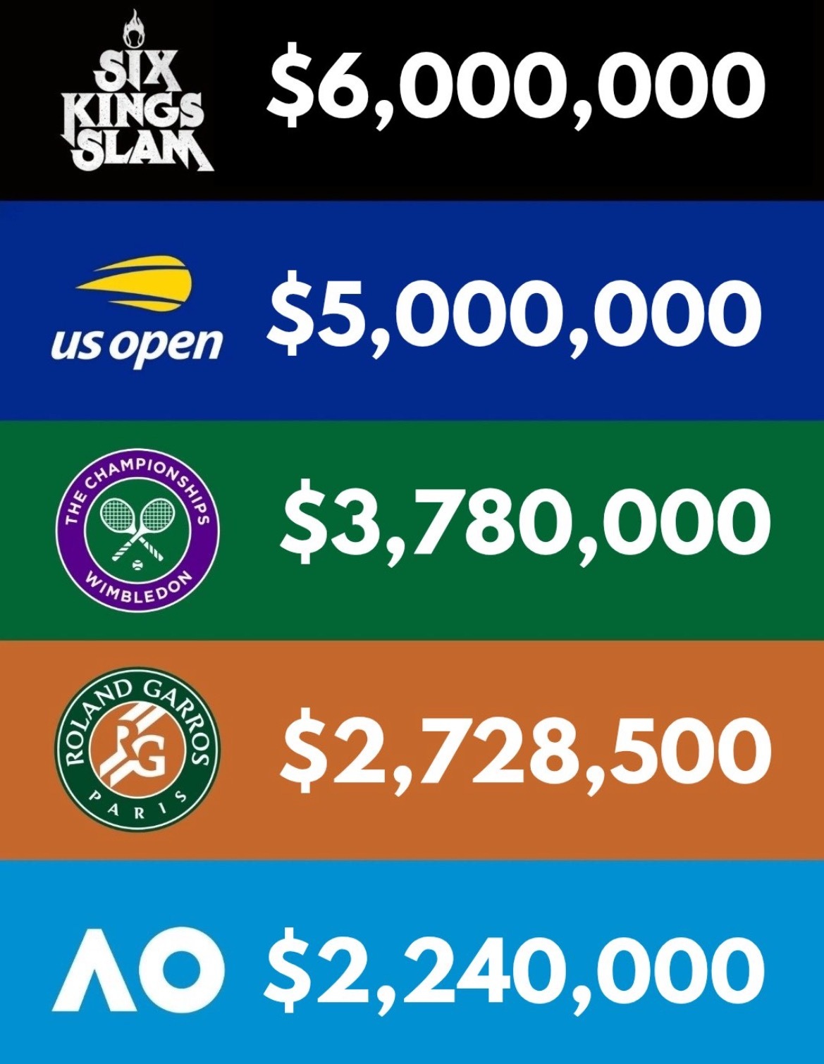 六王满贯的冠军奖金有多壕,比四大满贯最高的美网还要高100万美金,几乎是澳网的三倍!💲🎫
