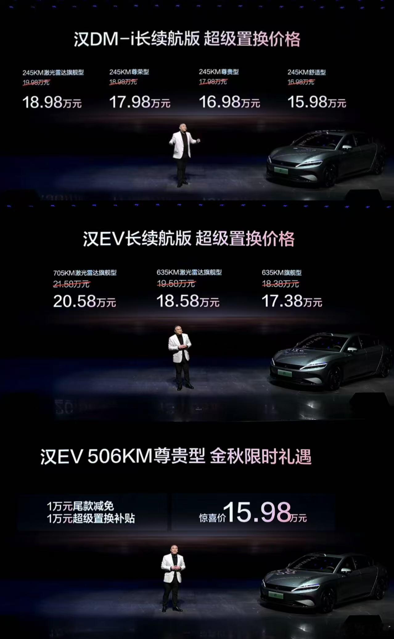 真羡慕现在买车的人,比如比亚迪汉,3年多以前买的时候不是顶配落地快25万,现在入手配置大幅升级,顶配还不到21万,而且还有各种补贴