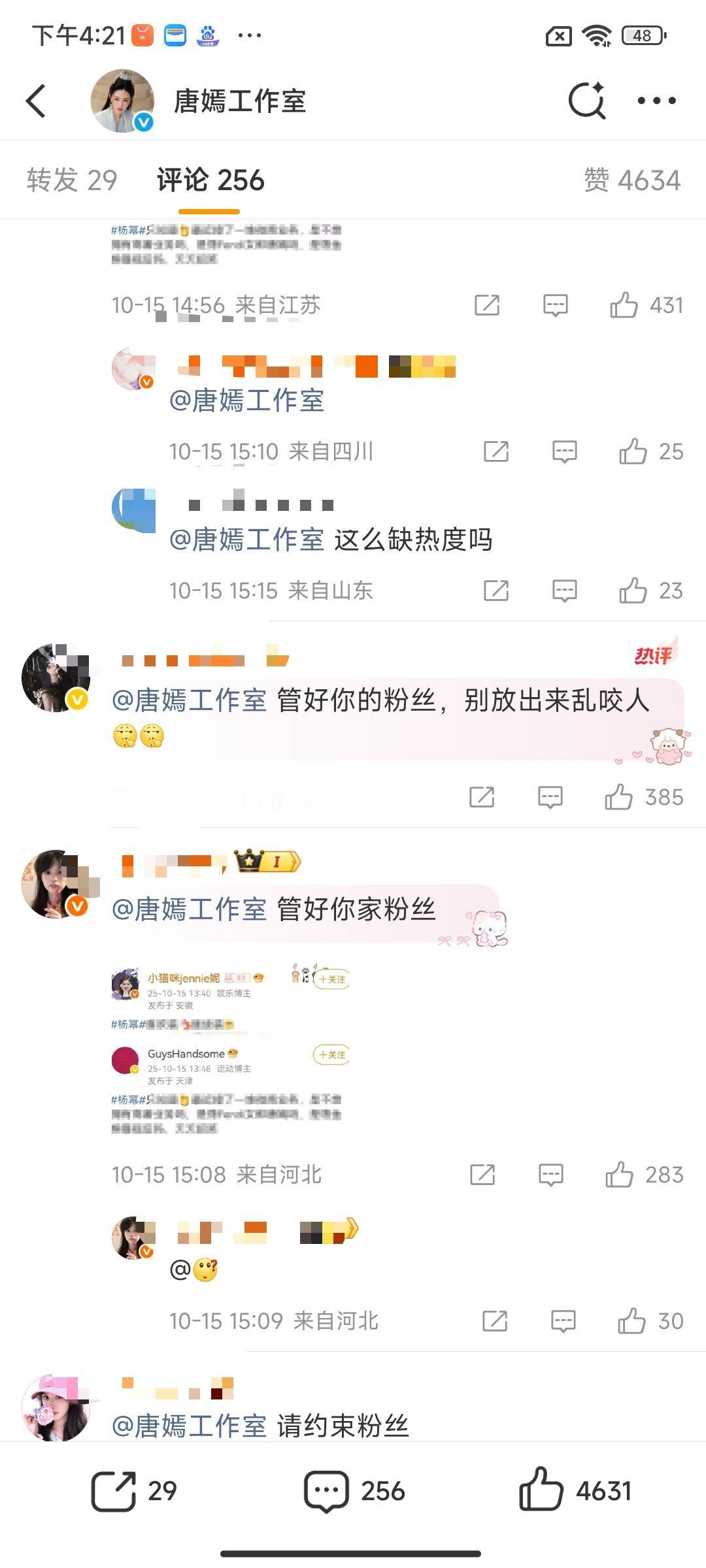 📢唐嫣工作室评论区都是杨幂粉丝在维权​​​