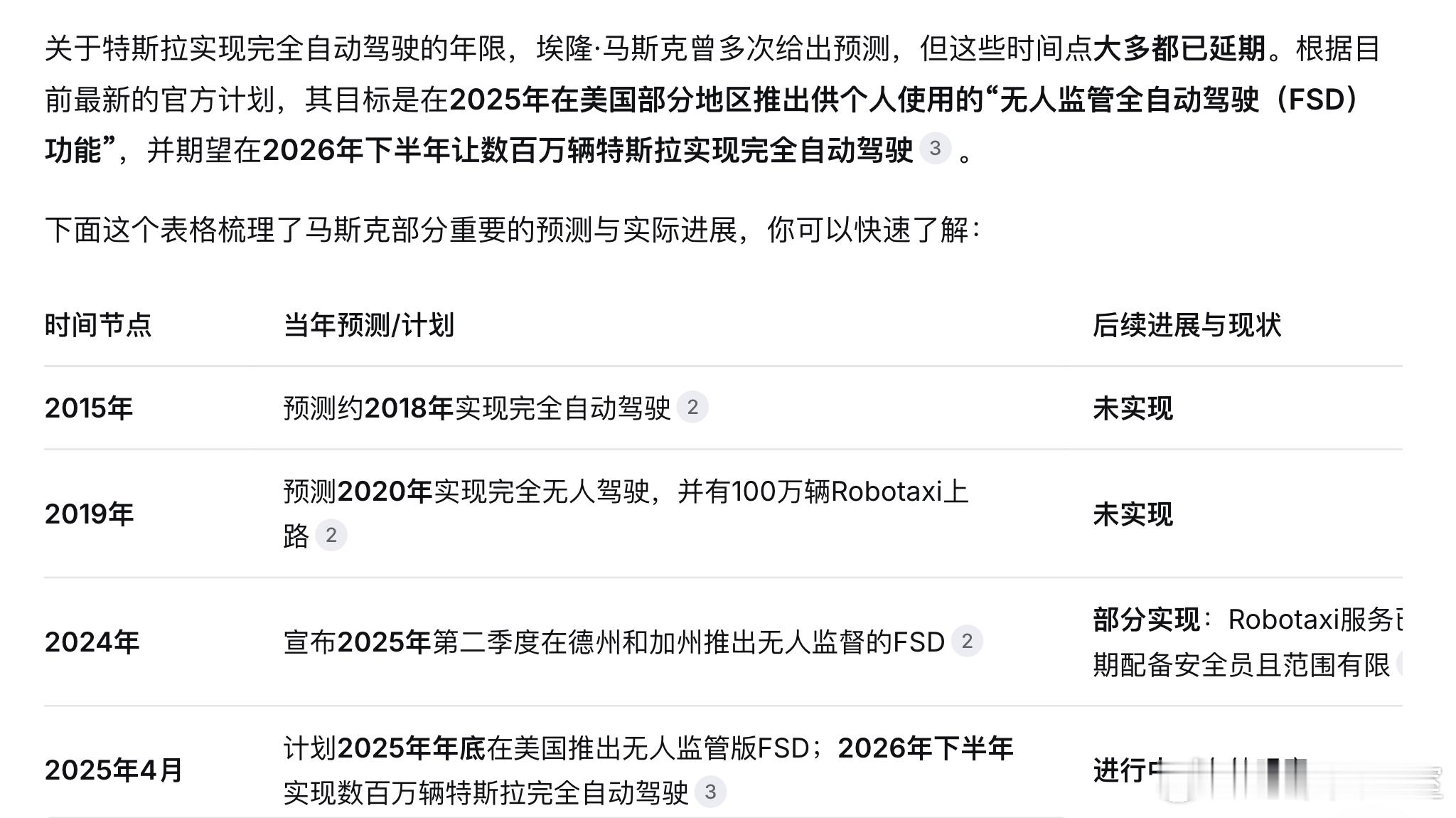 马斯克也曾多次提到自动驾驶实现时间,但最终也是多次延期