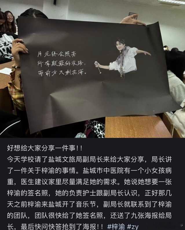 投稿:梓渝给重病女孩完成心愿!(希望女孩早日康复)[捂嘴哭] 梓渝给病重女孩送签名照
