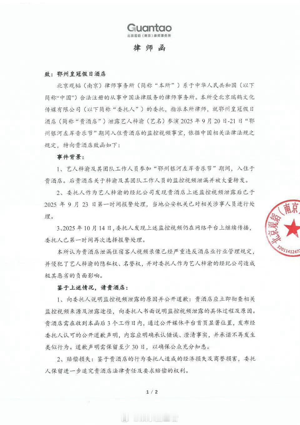 田栩宁方取证难?想告黑的话也就一个晚上的事,这不律师函来了吗。。。力挺瑞鹤娱乐!