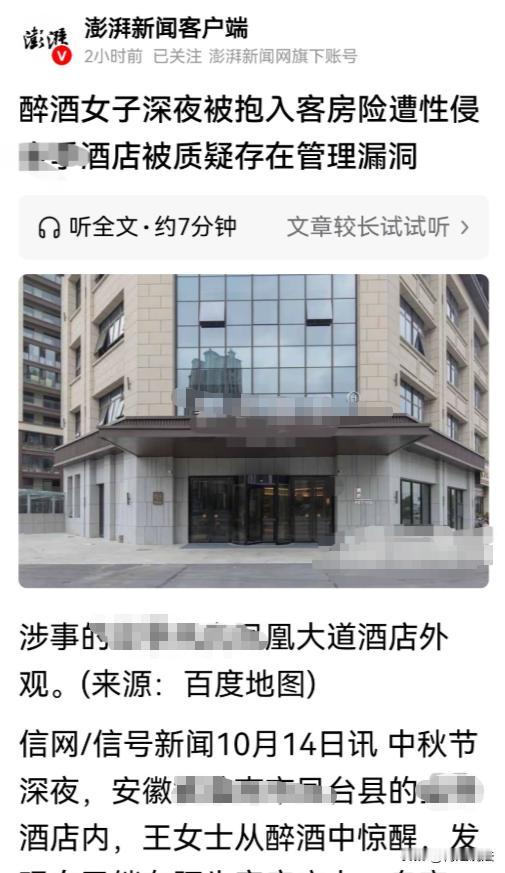 安徽淮南,王女士醉酒后被一男子带入酒店,男子趁其醉酒试图侵犯,王女士反抗时抓伤