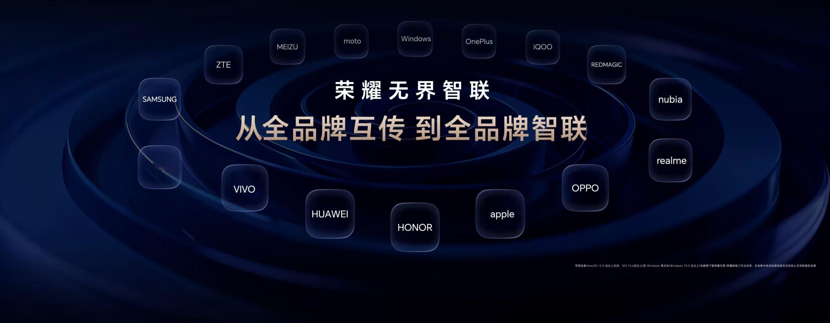 荣耀全品牌互传实现向全品牌智联的进化,让数据与服务围绕用户需求在所有设备间自由流转。 荣耀还带来最强苹果生态智联解决方案,荣耀Magic8秒变苹果生态超级搭子,可轻松实现荣耀设备与 iPhone 设备的信息互通互联。 荣耀无界让所有品牌的PC都可以加入荣耀信任环,构建出真正开放、可信、无界的智慧生态。 荣耀发布会荣耀Magic8MagicOS10