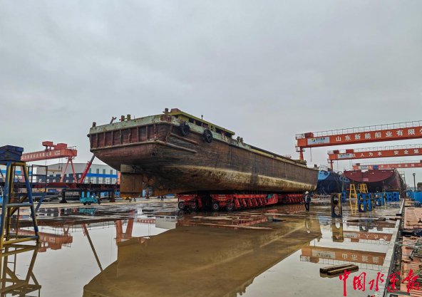 在京杭运河支流的白马河畔,一艘老旧货船正由模块车组稳稳托举着移向拆解工位。这是山东新能船业有限公司(以下简称“新能船业”)承接的首个船舶拆解项目,同时也标志着京杭运河济宁段专业化拆船能力成功实现了“零的突破”。近年来,济宁市依托内河新能源船舶制造基地,率先构建起覆盖内河船舶“造、修、拆、维”全链条的一体化管理新模式,为推进内河航运绿色化、智能化发展提供了关键支撑。