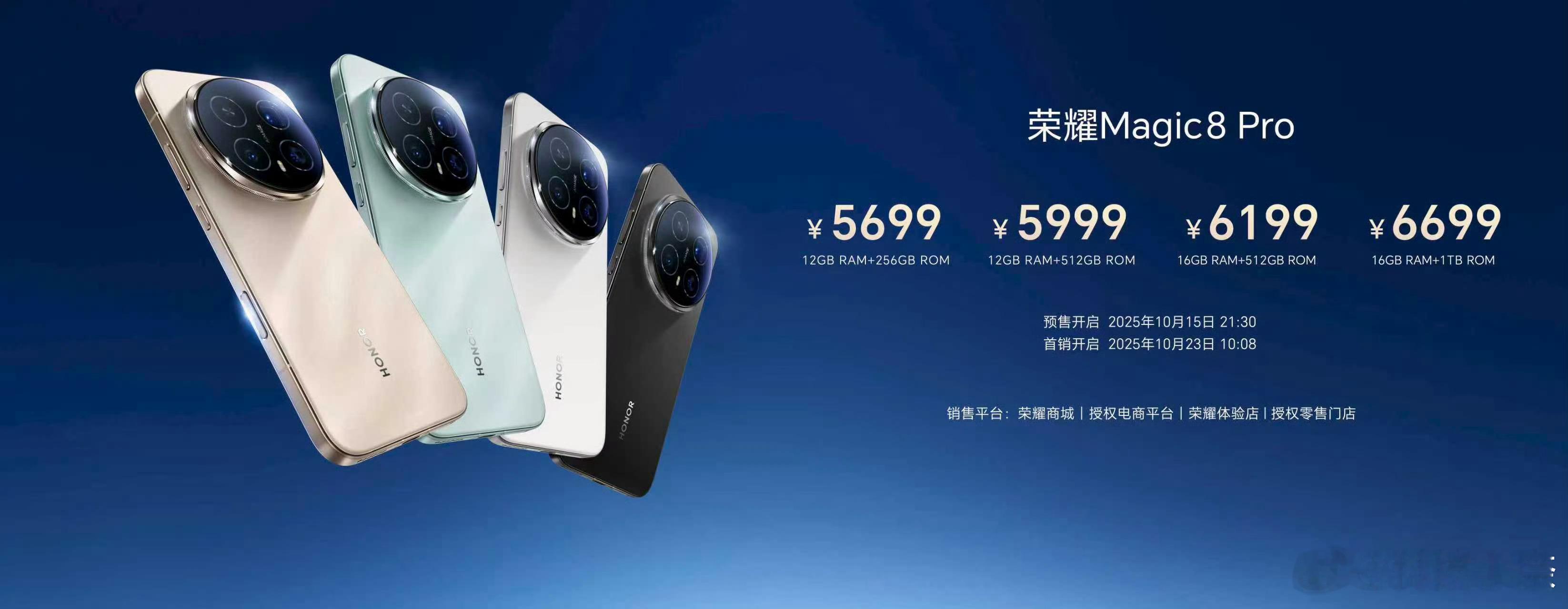 荣耀Magic8 系列价格公布:Magic8 4499起,Magic8 Pro 5699起!