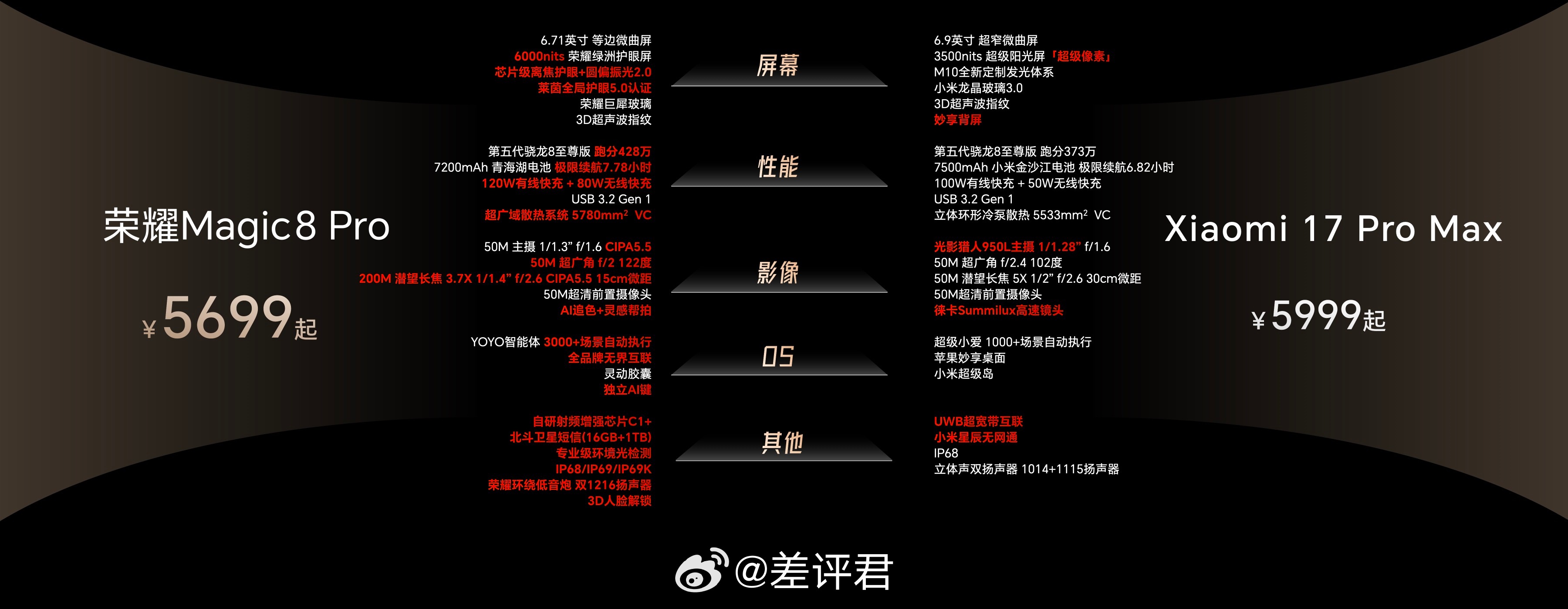 #差评在现场##荣耀Magic8# 这场发布会仿佛把我带回了那个各家手机发布会都意气风发年代——在友商都在讲怎么对标iPhone,怎么兼容苹果都时候,我们荣耀坚持在讲自己的Ai,讲影像,讲性能,当然还有老数码爱好者都喜闻乐见的对比友商缓解,注意,是全名对比,绝不藏着掖着[doge]。
