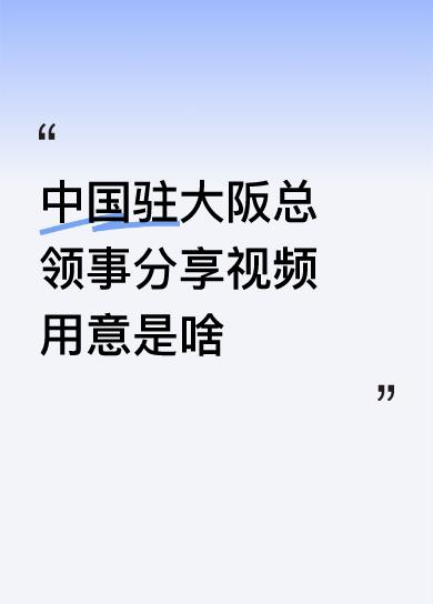 中国驻大阪总领事分享视频用意是啥中国人的智慧,发个视频,自己拿去悟吧。