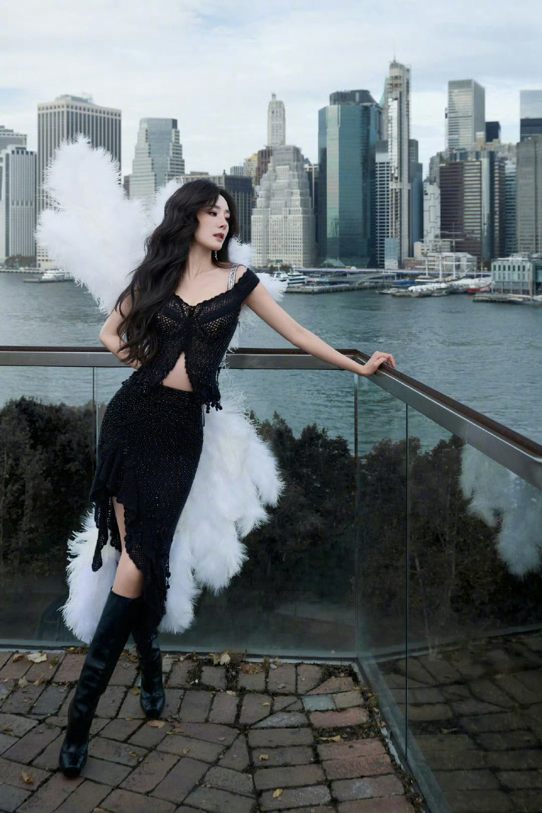 杨幂维密翅膀当杨幂披上纯白维密翅膀,在都市背景下美成焦点,又甜又飒的魅魔既视感,