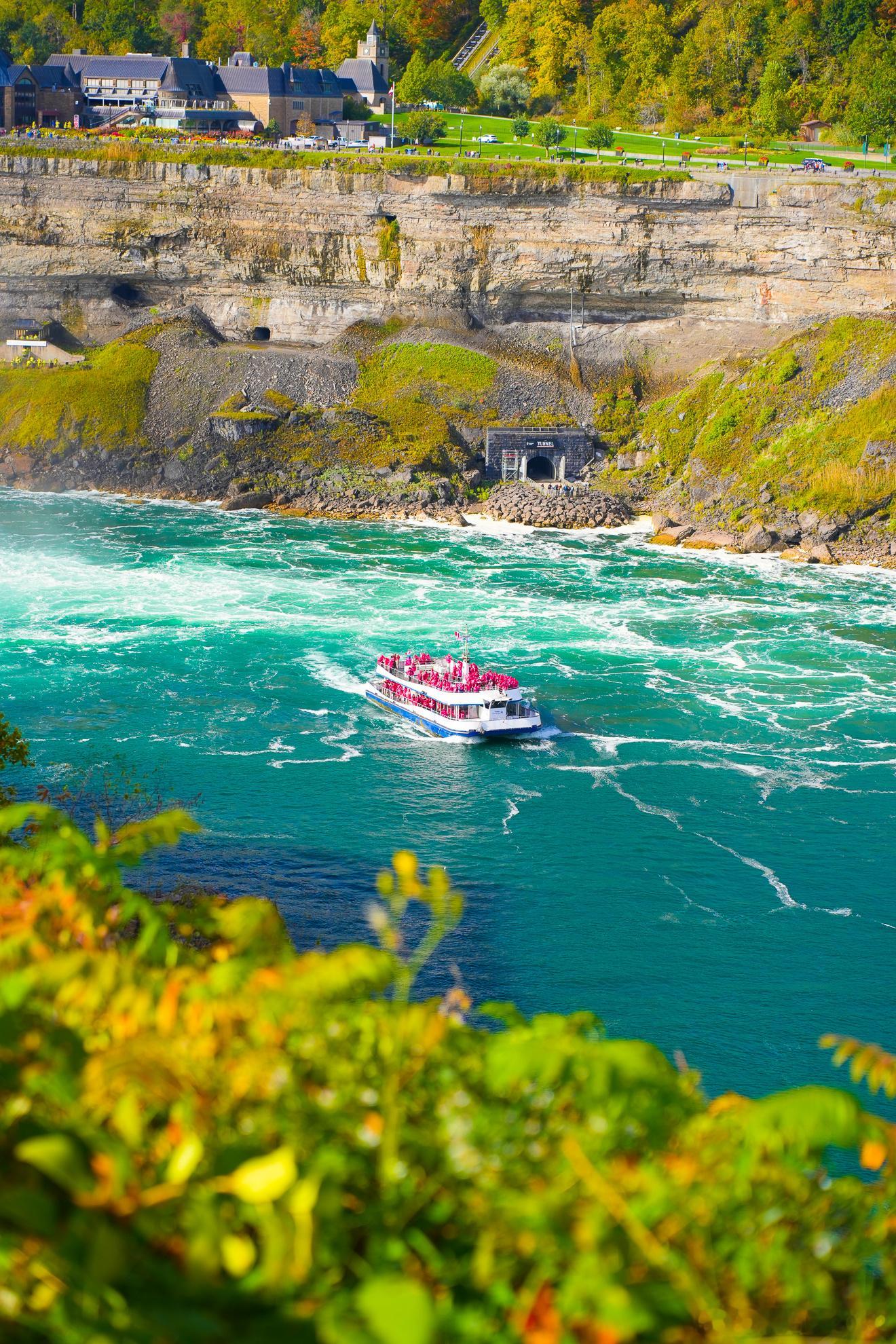 ✅雾中少女号游船:此生必冲的湿身体验!登船发的纪念雨衣一定要留,但别指望它能完全防水 —— 当游船扎进马蹄瀑布底部,水雾像暴雨般砸下来,轰鸣声震得耳朵发麻,抬头瞬间彩虹直接撞进眼里,和对岸加拿大游船挥手互动超有画面感。划重点:抢船左侧位置,直面瀑布倾泻的震撼视角!
