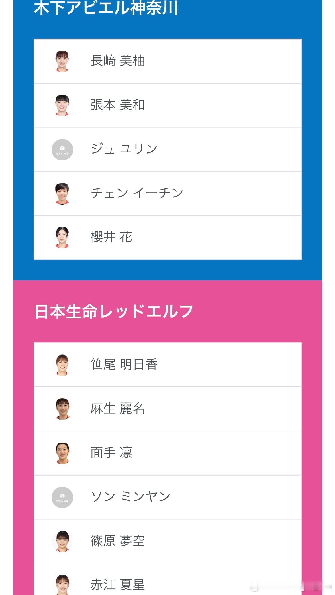 木下神奈川:长崎美柚、张本美和、朱雨玲、郑怡静、樱井花