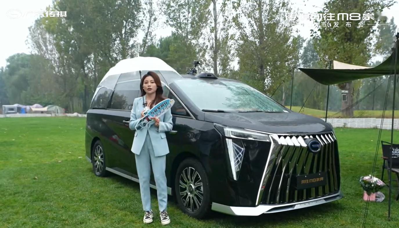 一会儿是传祺向往M8宗师上市发布会,新车很明显的变化就是顶部安排上了激光雷达,智
