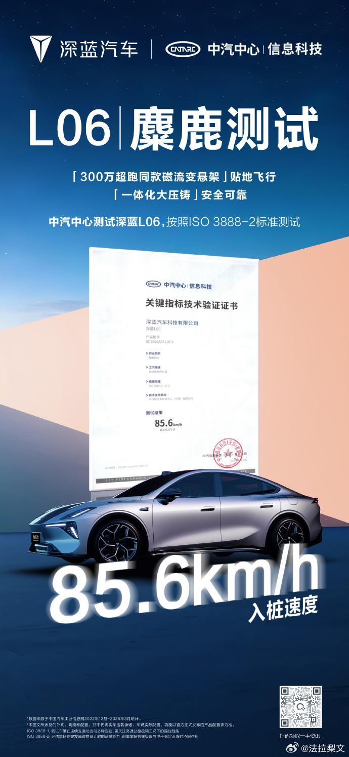 不吹不黑,在20万级车型中,能把操控与安全结合到这份上,L06确实值得一看。深蓝L06麋鹿实测成绩曝光