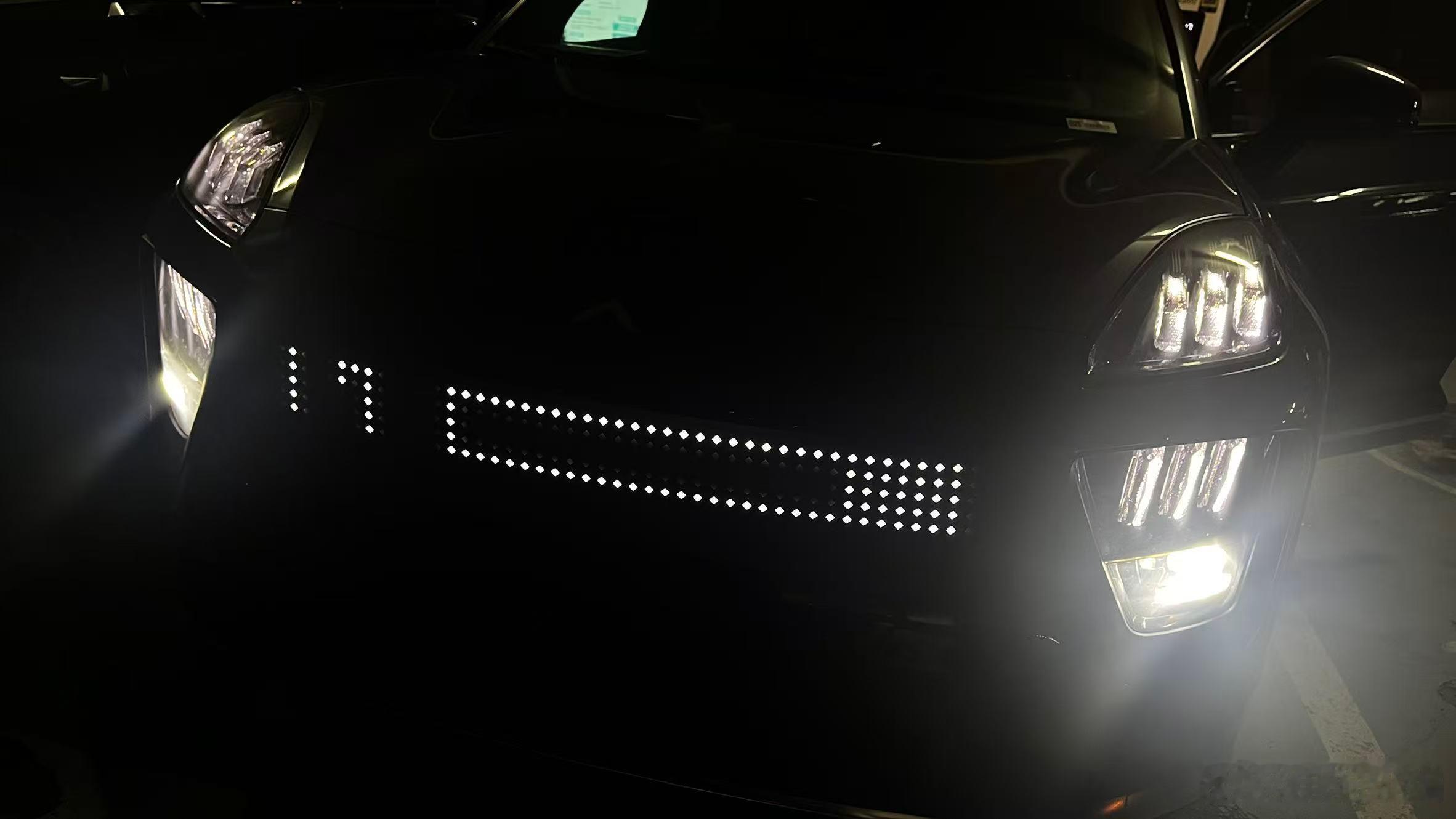 昊铂HL的充电交互设计,除了车侧有指示灯,前脸点阵更直观,可以实时显示电量进