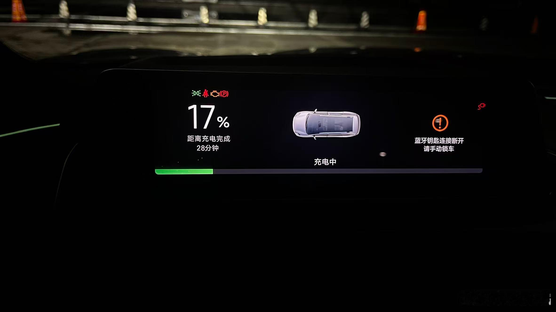 昊铂 HL 的充电交互设计,除了车侧有指示灯,前脸点阵更直观,可以实时显示电量进度与状态。昊铂hl昊铂广汽