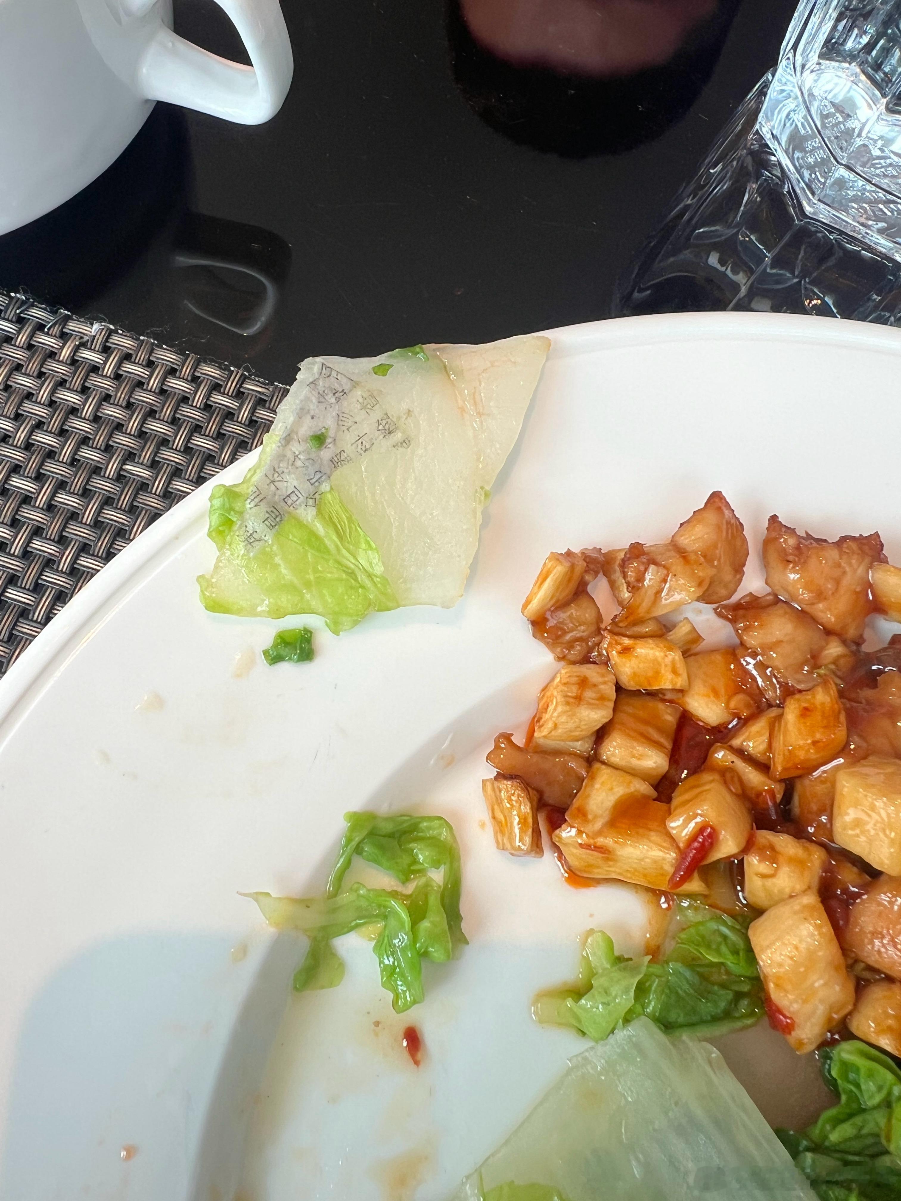 这就是上海锦江汤臣洲际酒店的午餐标准,白菜炒报纸,菜上刻字,一个星级酒店都如此,