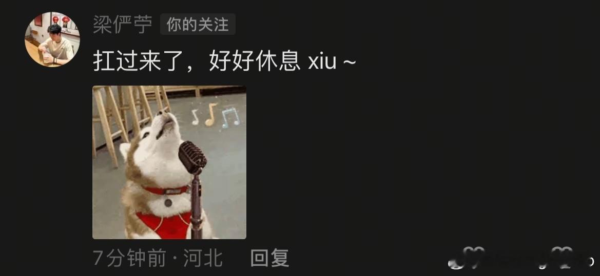 梁俨苧: 扛过来了,好好休息 xiu ~