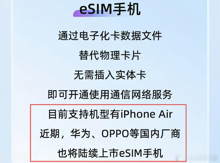 苹果华为OPPO将推出eSIM手机蛮好,不需要插拔卡槽了,手机也少了个挖孔,就是