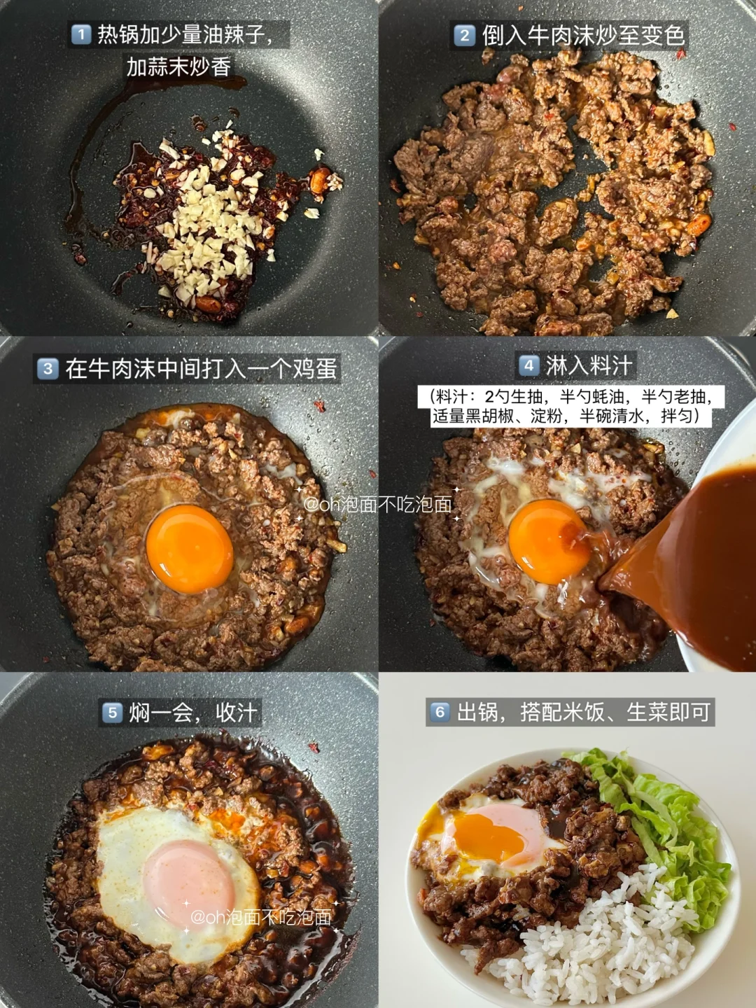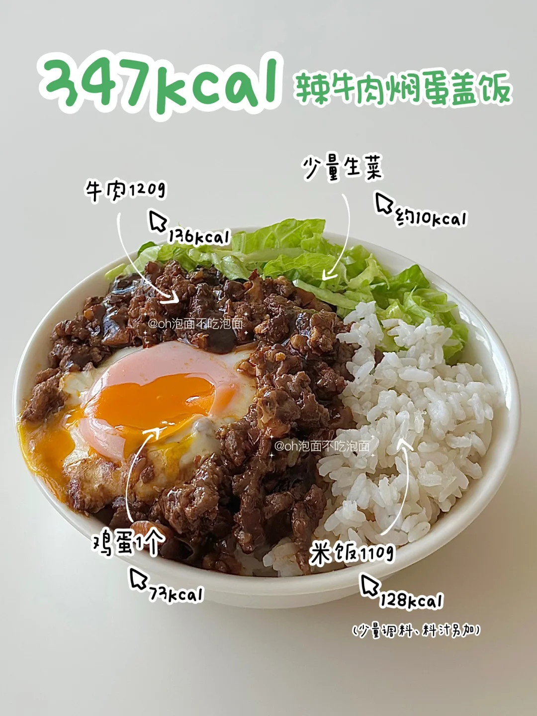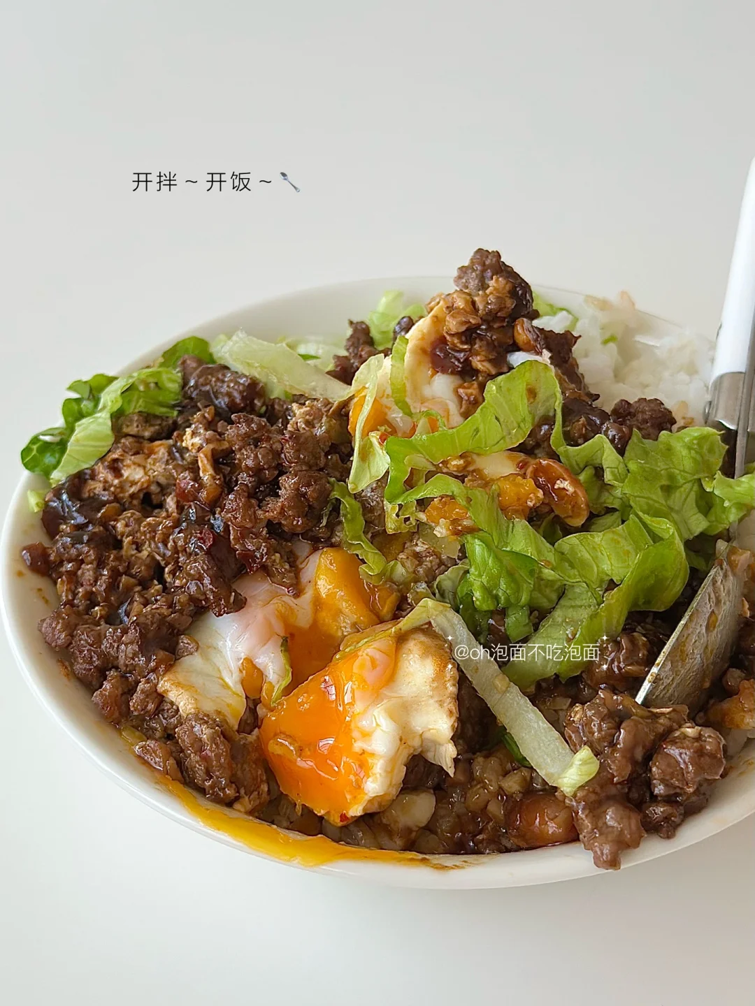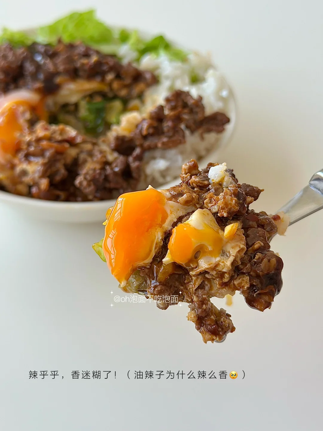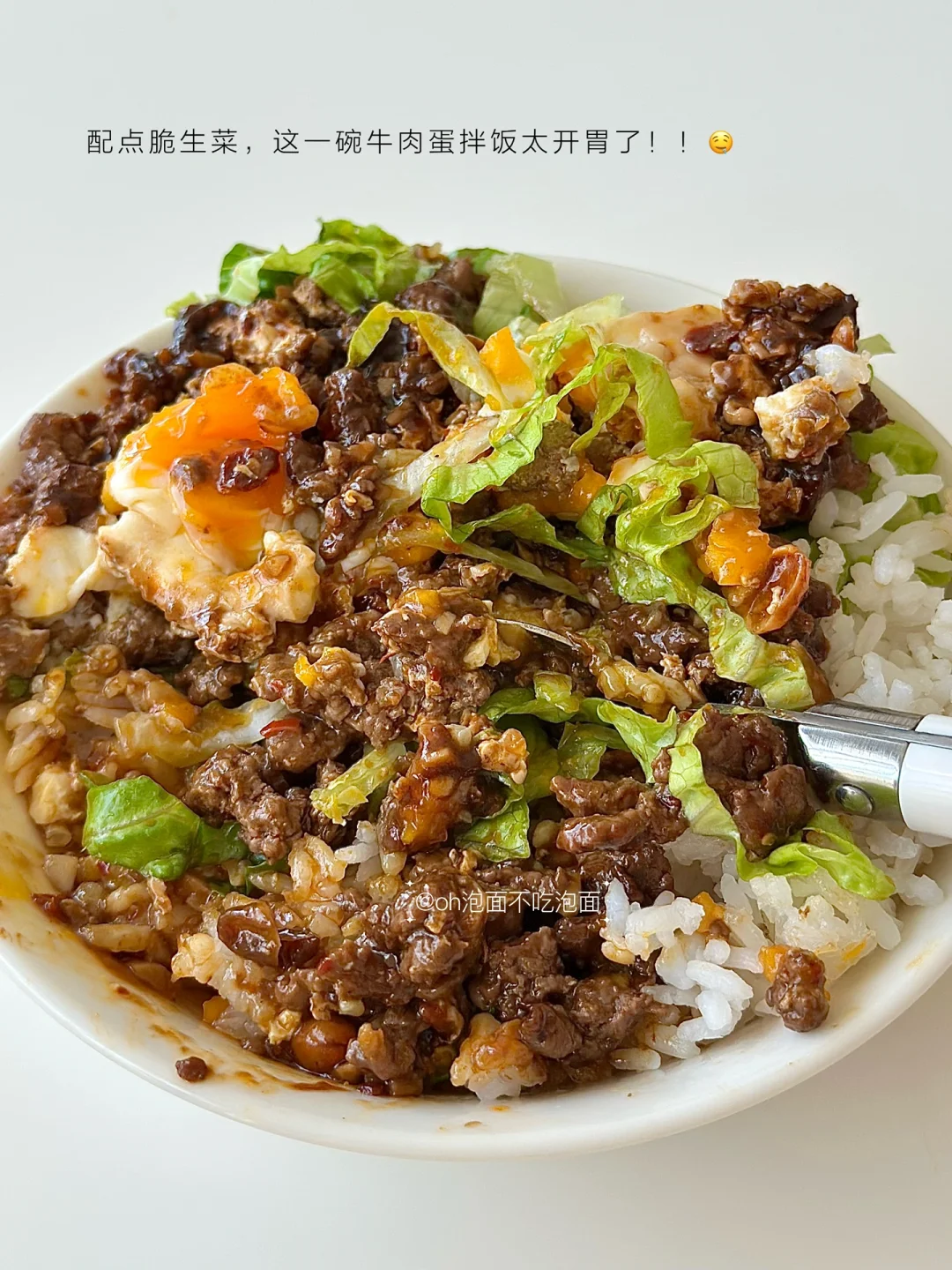 😋低卡辣牛肉蛋拌饭,敲香!好吃!辣乎乎香喷喷,一碗满足~ 🥩食材:牛肉(剁沫),鸡蛋,生菜,米饭 🥣步骤: 1. 热锅加少量油辣子,加蒜末炒香 2. 倒入牛肉沫炒至变色 3. 在牛肉沫中间打个蛋 4. 淋入料汁(料汁:2勺生抽,半勺蚝油,半勺老抽,适量黑胡椒、淀粉,半碗清水) 5. 焖一会,收汁 6. 出锅,搭配米饭、生菜即可