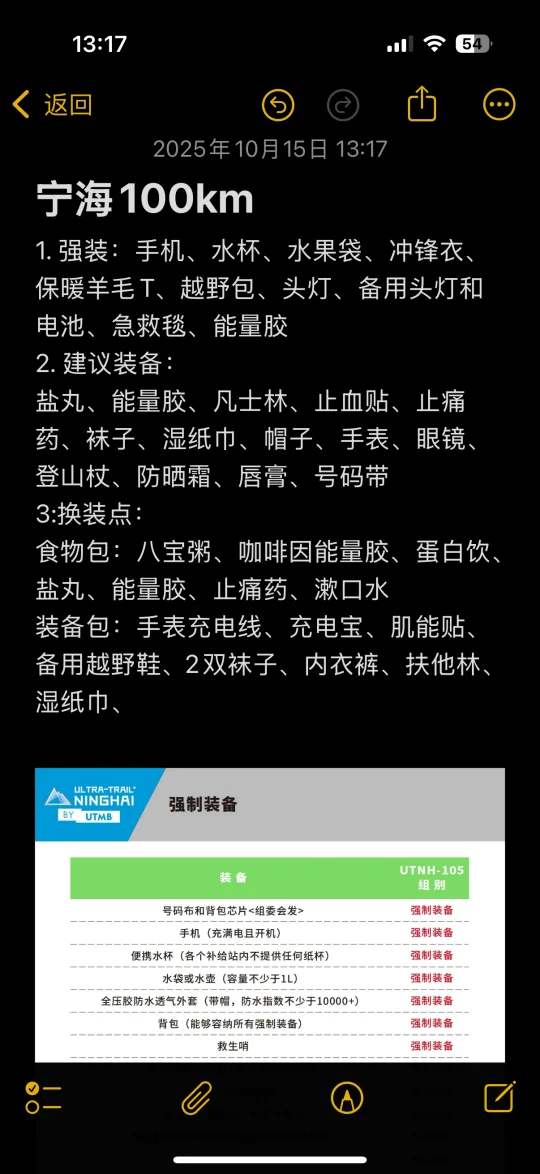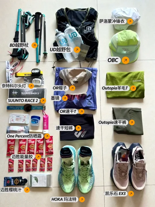 以下是一场百公里越野赛 准备的装备