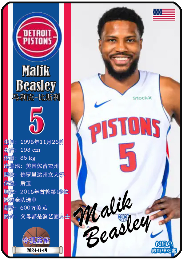 活塞.马利克-比斯利(场均16.3分2.9板1.7助)