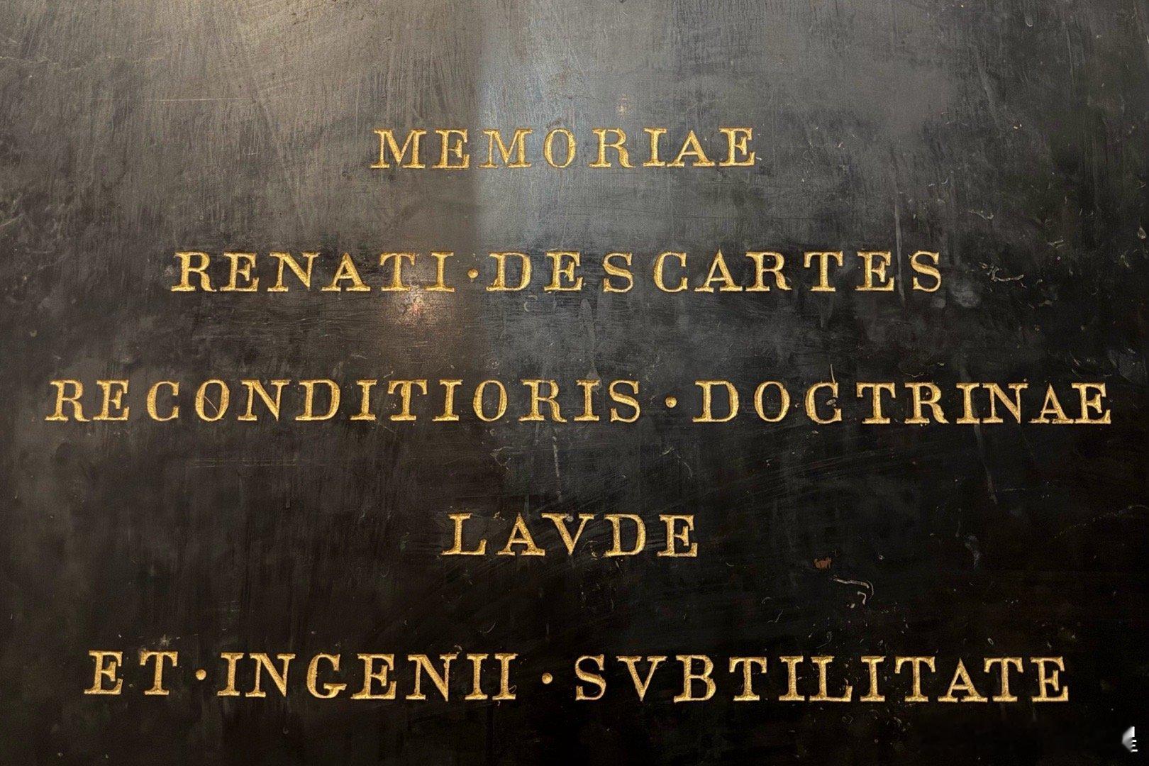山不在高,有仙则灵。17世纪大哲学家笛卡尔的遗骸于1819年迁入这个教堂的附属礼拜堂,图5的第二行是他的墓碑名。