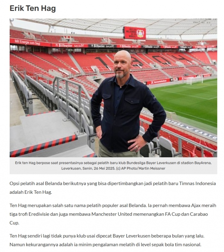 该媒体就此对新任印尼主帅进行了展望:“哪些荷兰籍教练有潜力成为印尼国家队的新任主教练呢?以下是我们的详细分析。”