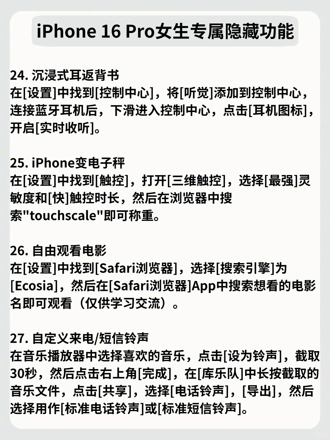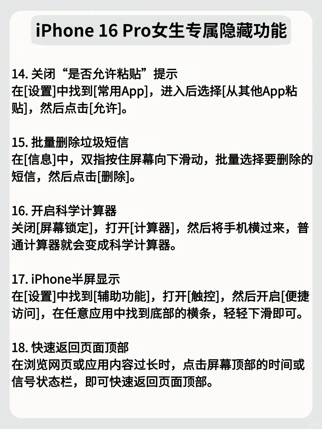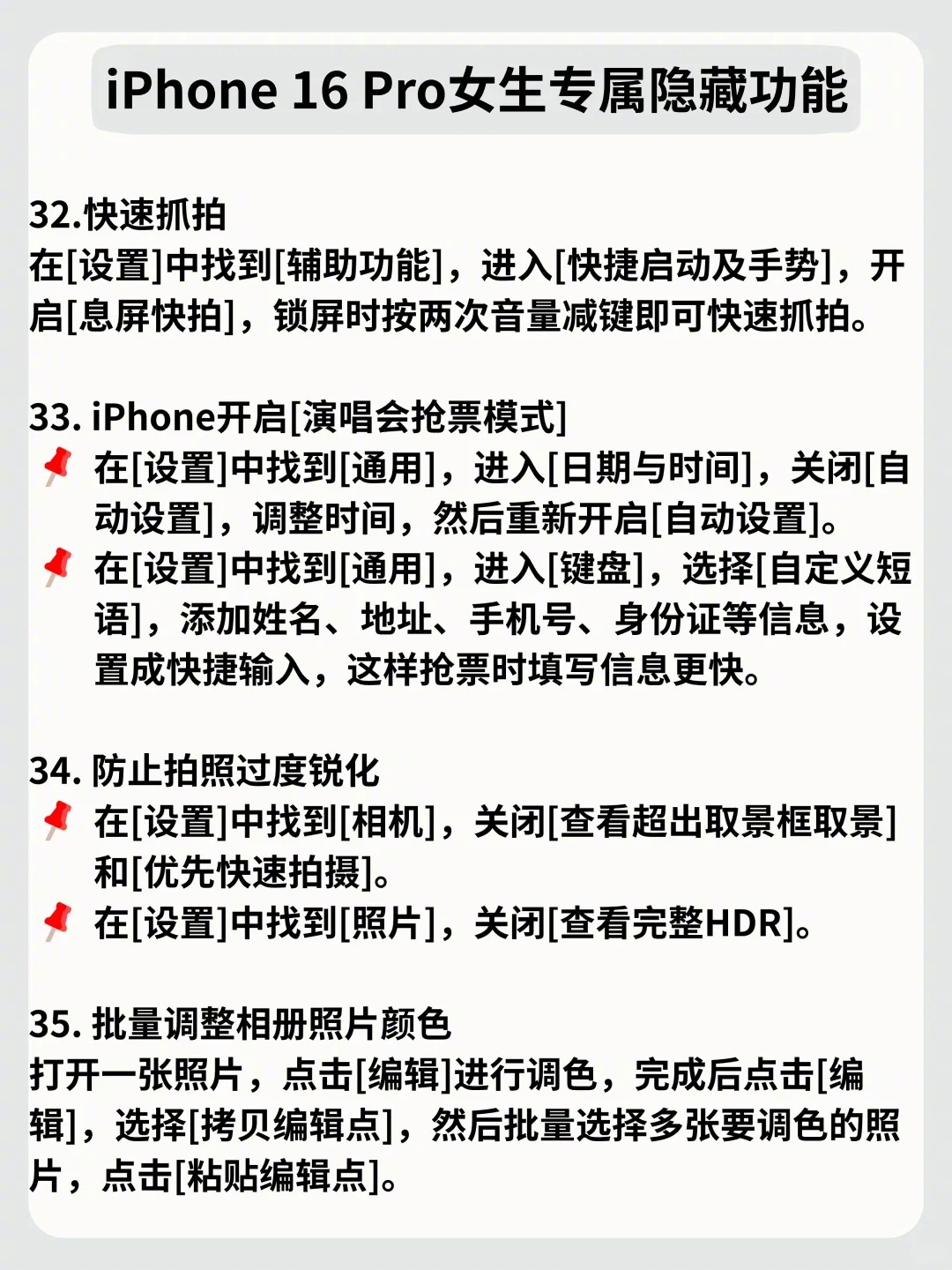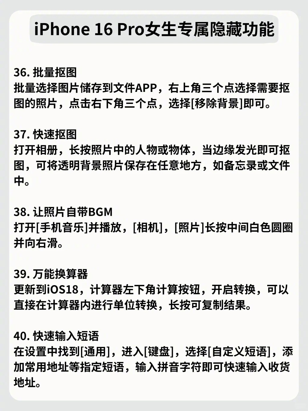 姐妹们!iPhone 16 Pro真的是颜值与实力并存的宝藏机型~ 别再只当普通手机用啦!学会这些隐藏玩法,瞬间把万元机的价值拉满。