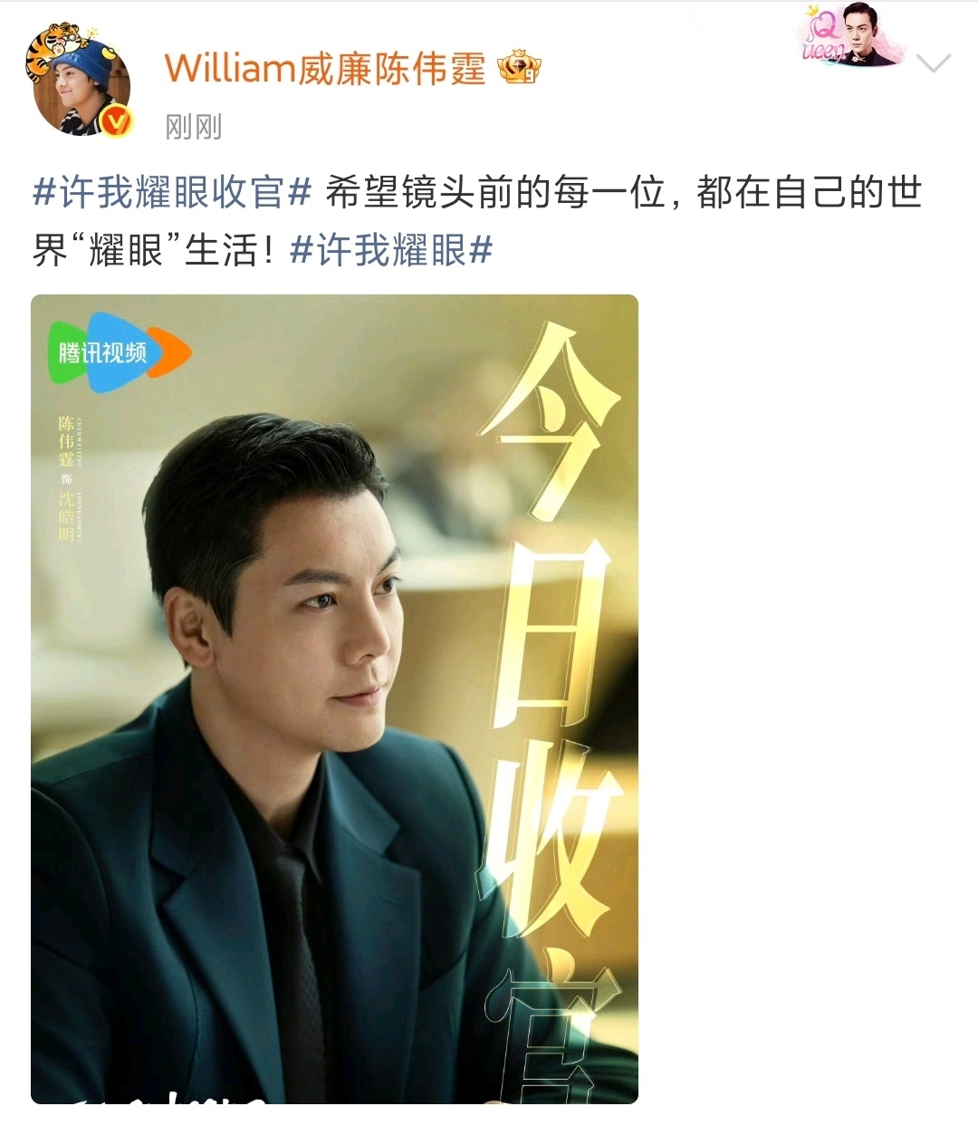 娱乐[超话]陈伟霆许我耀眼收官陈伟霆许我耀眼收官发文陈伟霆许我耀眼收官发文,希望