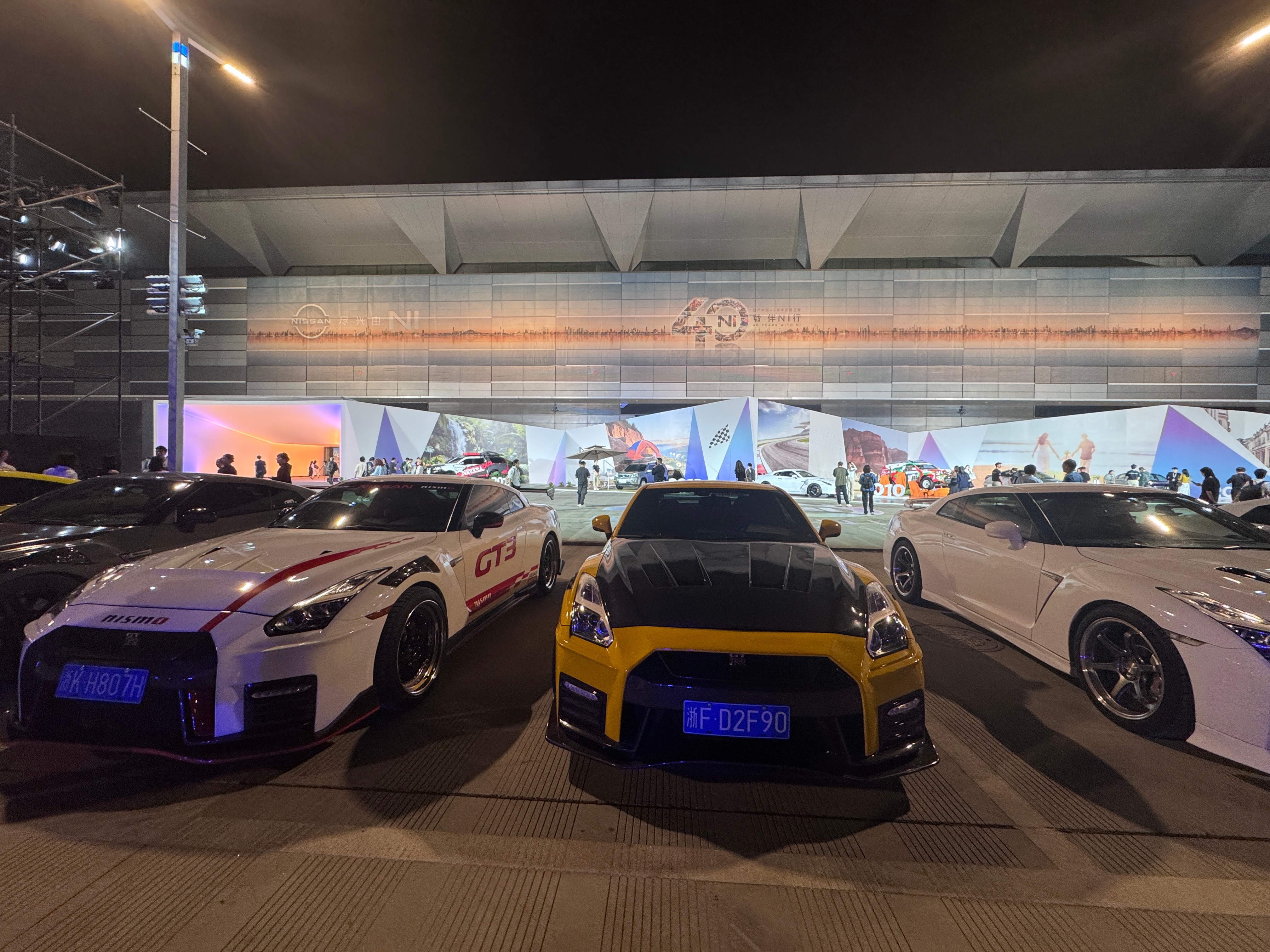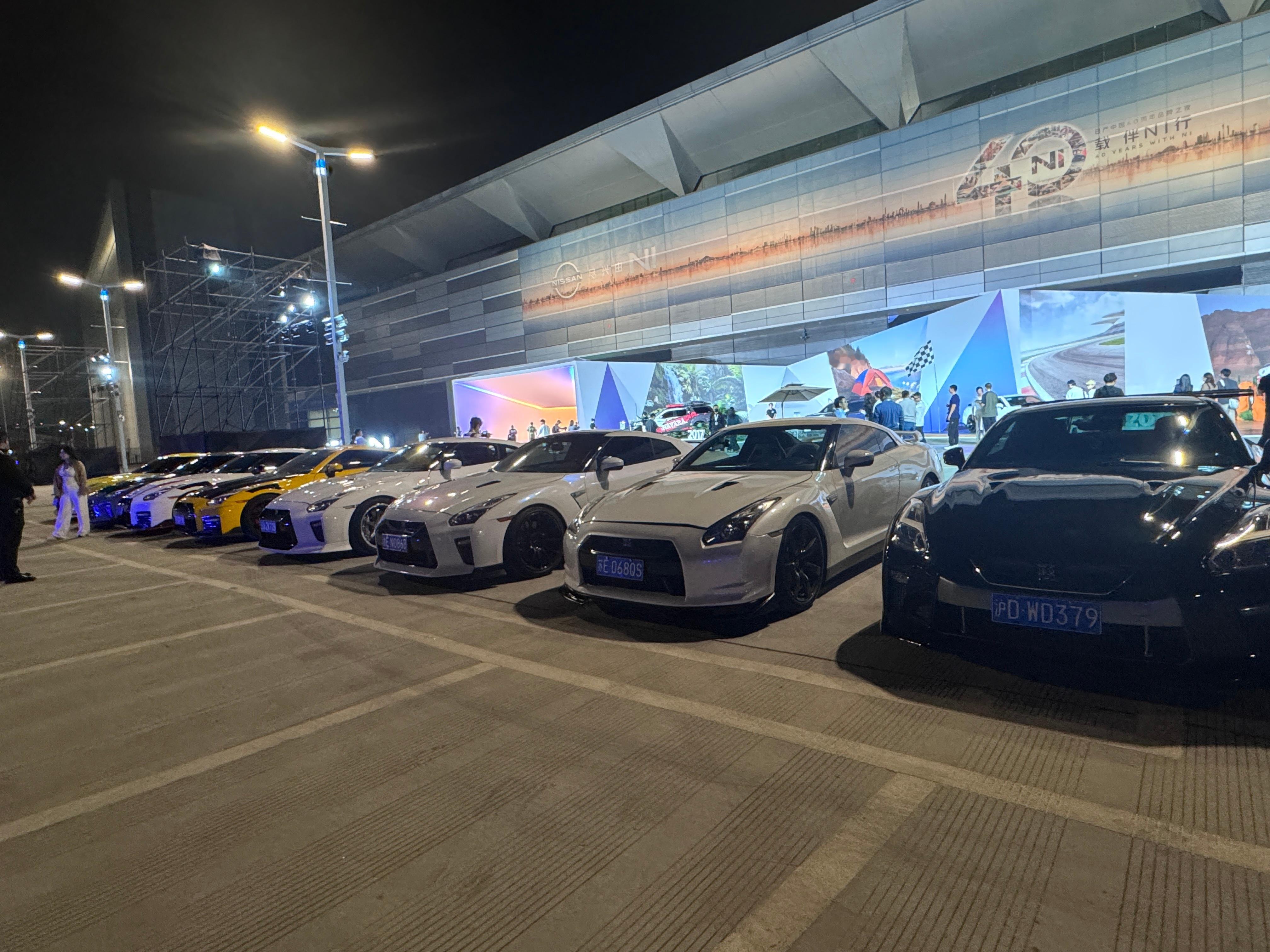 日产中国40周年会场门口,停了一排帅得让人不愿移开眼睛的gtr.作为旧时代的燃油