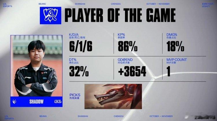 BLG在蜜月期内就是无敌的,shad0w只要是上场第一场必哪MVP