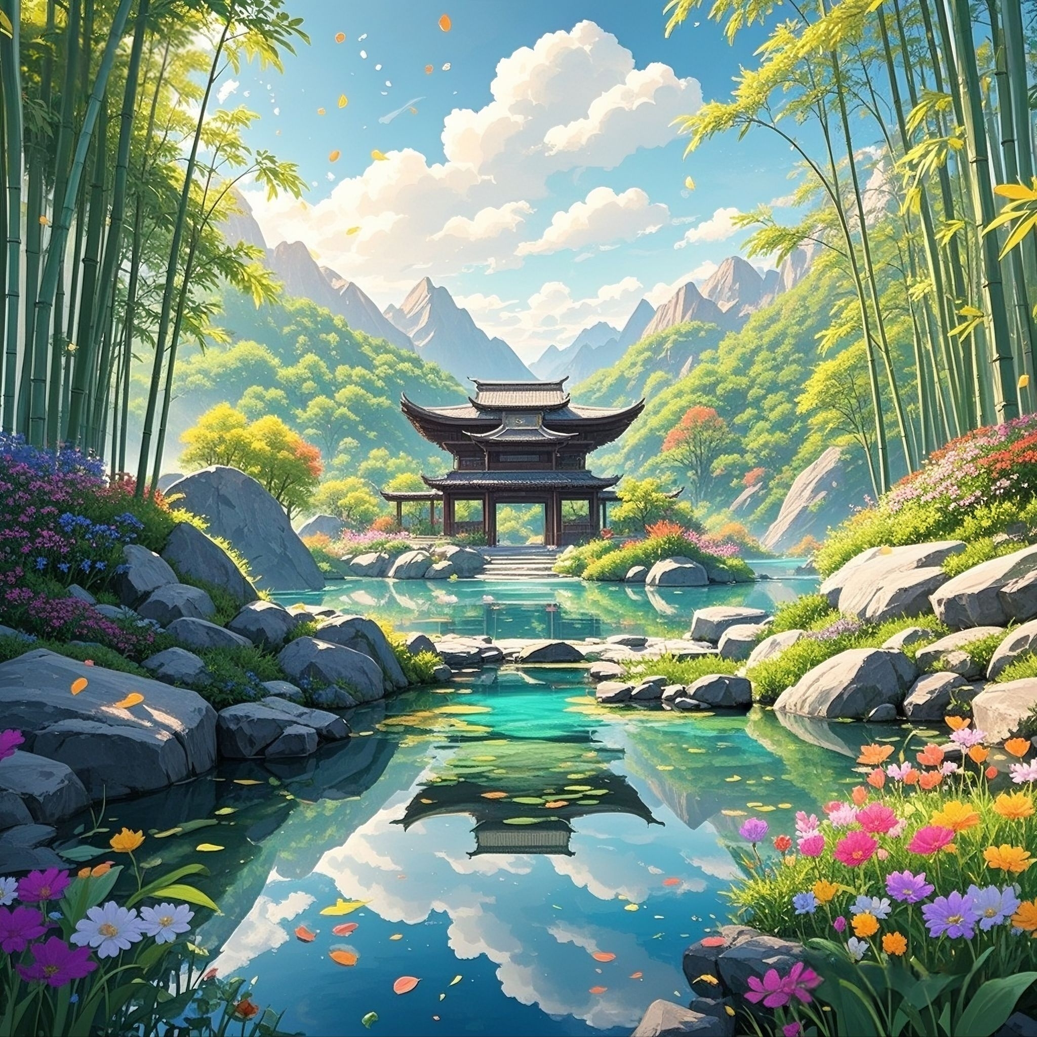 石潭蓄满流动的苍穹,山色沁透了水,水色晕开了山。