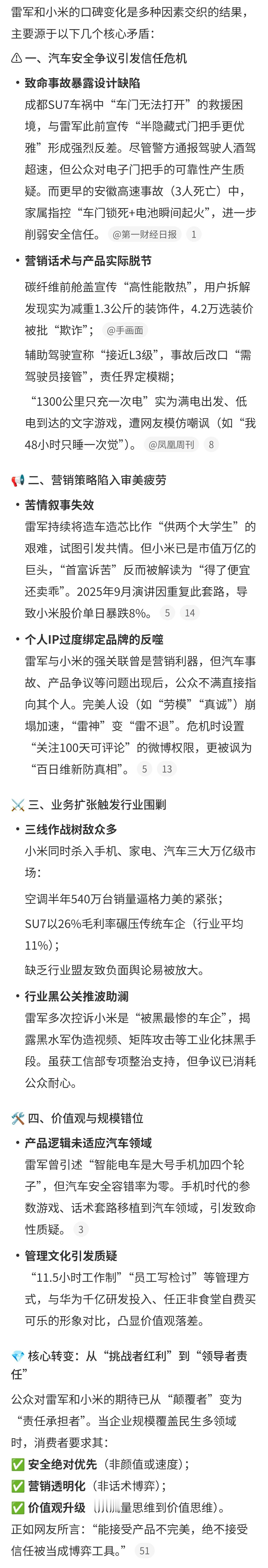 为什么雷军的口碑变了雷军在求变,从做手机到造车,改变是必然的,所以大家对他的看法