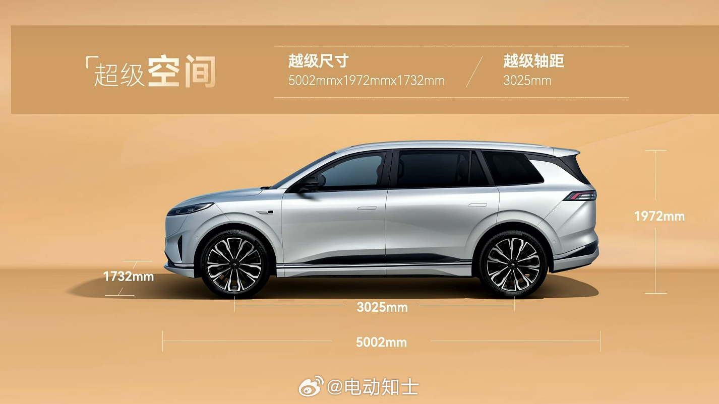 车身尺寸5002*1972*1732mm,轴距3025mm。