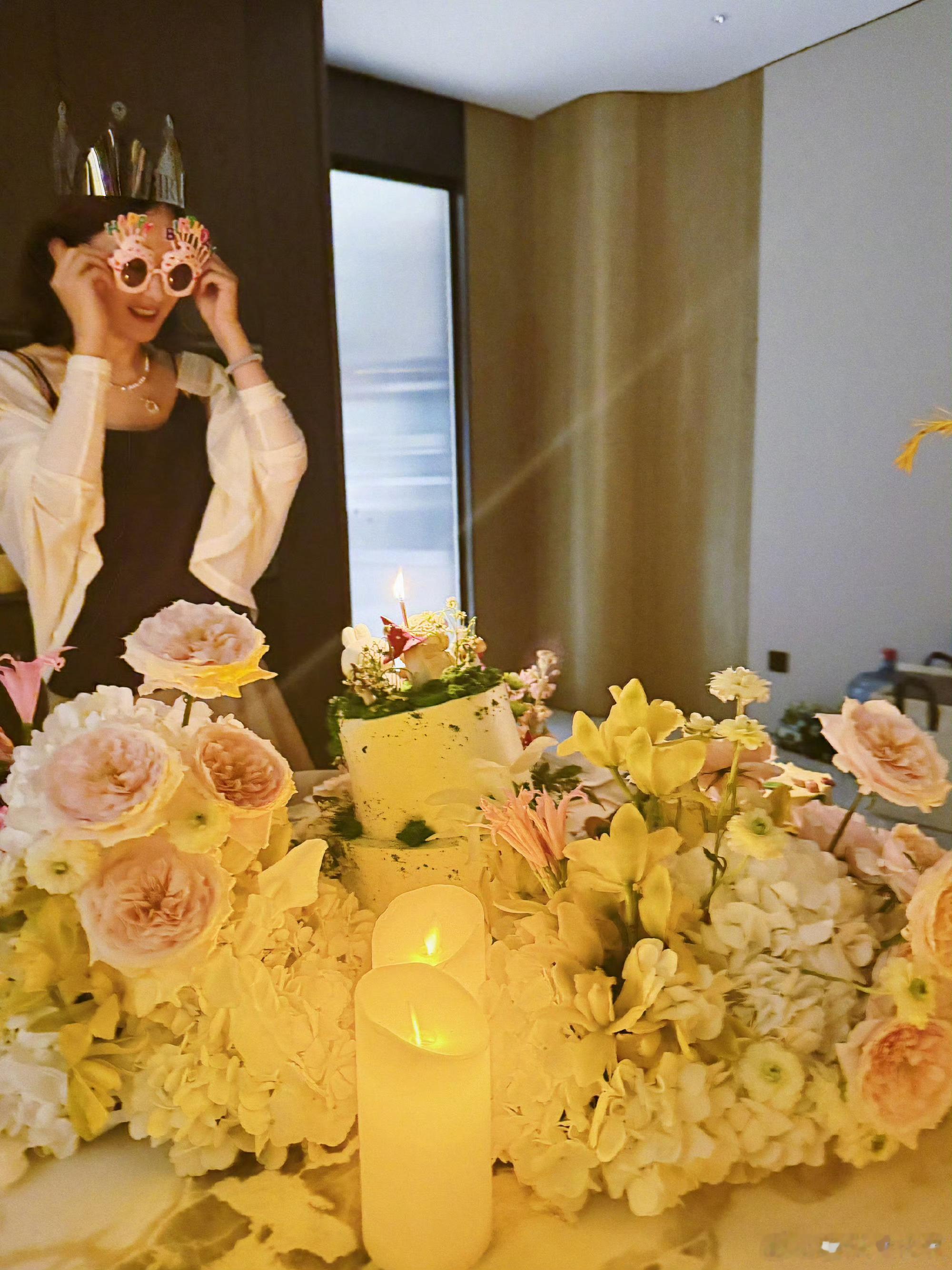 赵丽颖庆生照片 赵丽颖晒38岁庆生照,被鲜花蛋糕包围,低头许愿,满脸洋溢着幸福![送花花]