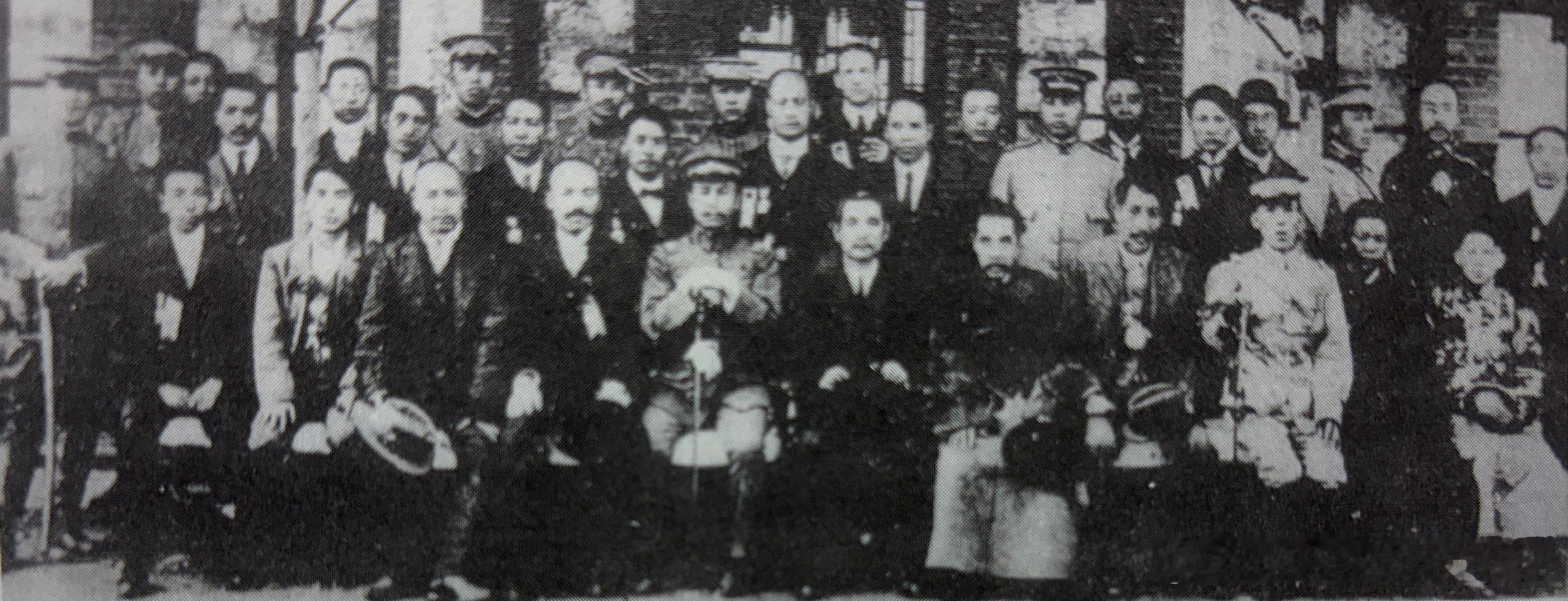 1912年9月19日孙中山在太原与起义人员合影,前排右六孙中山、右七阎锡山。此后