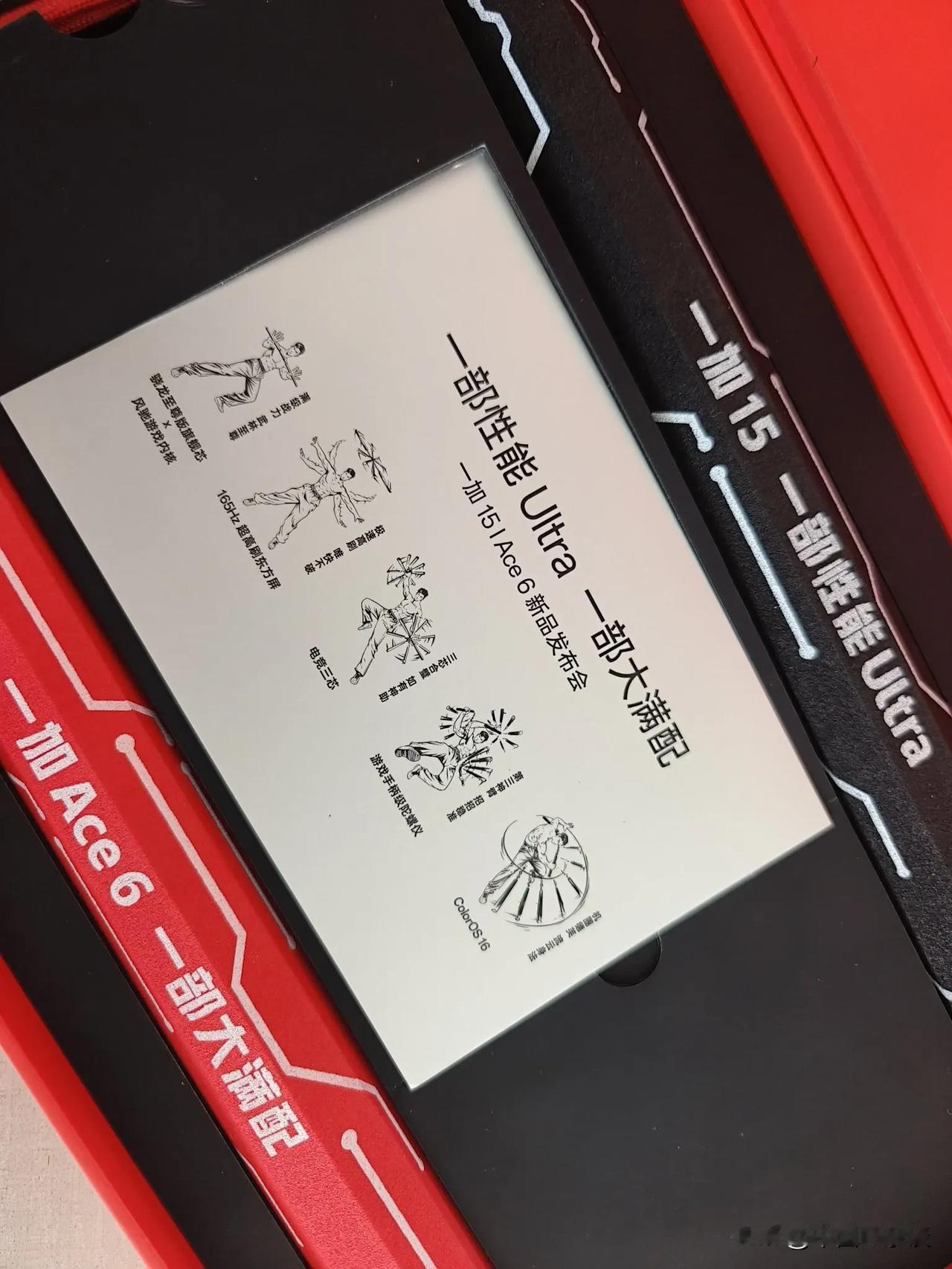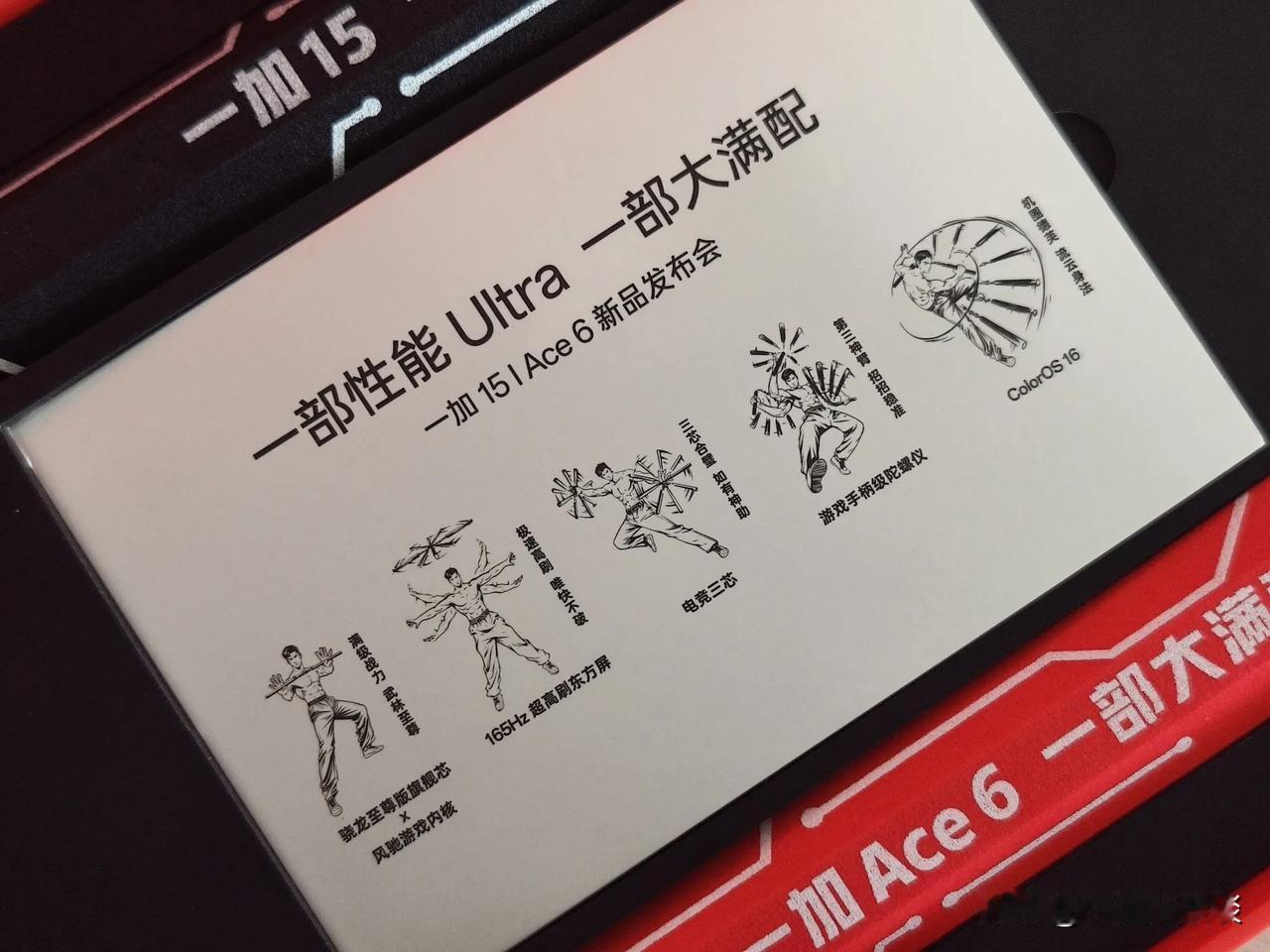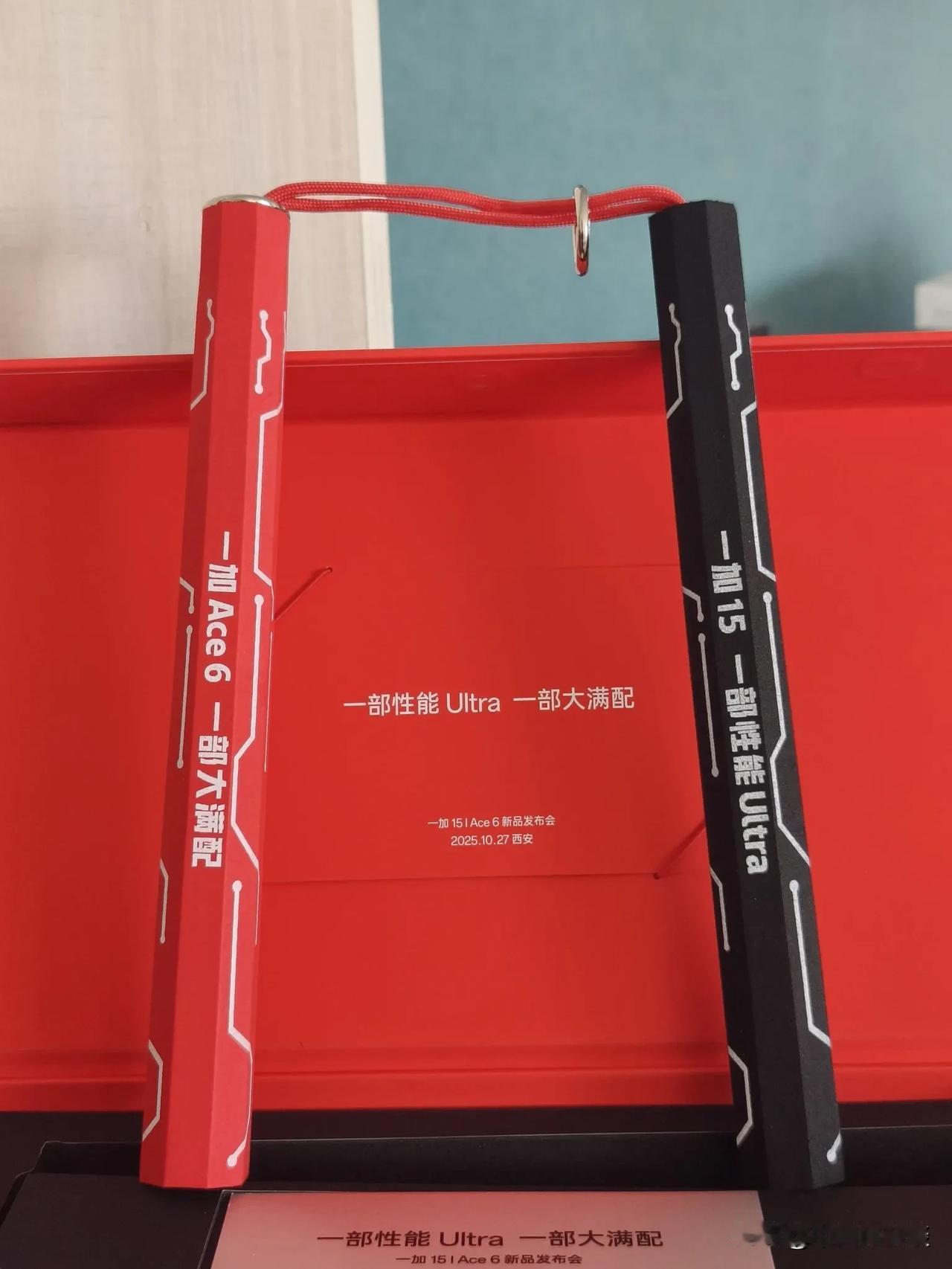 收到一加15与一加Ace 6发布会邀请函,定档10月27号在西安发布!这次邀请函很有意思是一组双截棍。双截棍一端代表一部性能Ultra的一加15,它以全球首块超高刷、高分辨率屏幕+最顶芯片+自研风驰游戏内核,开启手游165超高帧时代,一端代表一部大满配的一加Ace 6,它以碾压同档的极致性能+超凡满配,致力打造新一代电竞标杆! 此外邀请函还有一张武林秘籍卡,这次发布会新品将拥有骁龙至尊旗舰芯+风驰游戏内核+165Hz超高刷东方屏+游戏手柄级陀螺仪+电竞三芯+ColorOs16等几大卖点。 10月27号晚上七点一加15与一加Ace 6发布会共同见证一加双机合璧,强强联手!