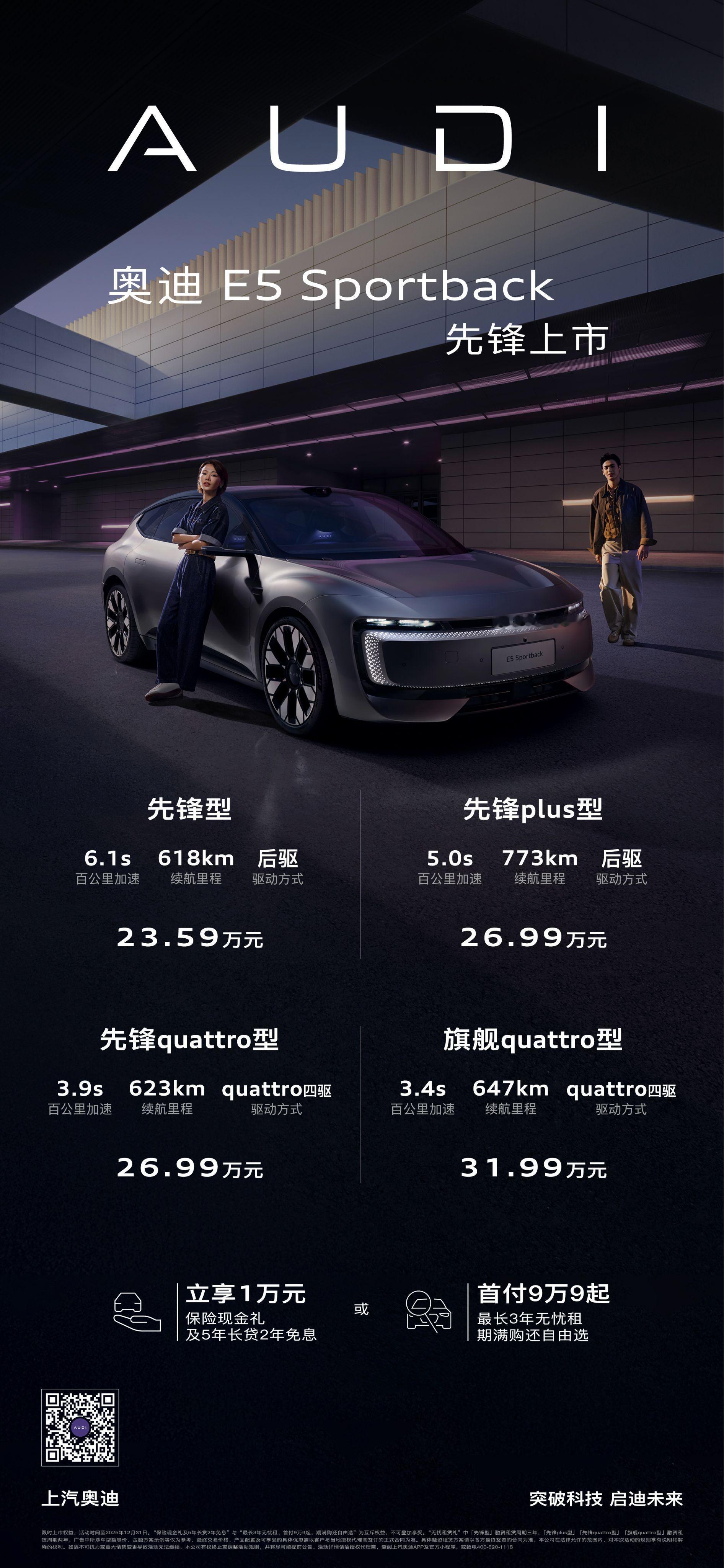看了几段老外在国内试E5的视频,他们对配置和价格都有种反复惊讶的感觉,说起来现在很多豪华品牌的新能源车动不动就高定价,配置却拉不上,用户体验被割裂的很明显,但最近从奥迪E5能看出,驾控、智能、体验和性价比是能做到共存的,在保留quattro四驱和奥迪底盘调校的同时,有激光雷达、Momenta辅助驾驶,让人既能体会到奥迪的机械基因,又能享受被智慧功能照顾的日常驾驶,最关键奥迪E5只要22万起就能拥有,这样一台豪华体验和性价比都拉满的车,确实独一份。豪华品牌里第一台具有性价比的车奥迪E5