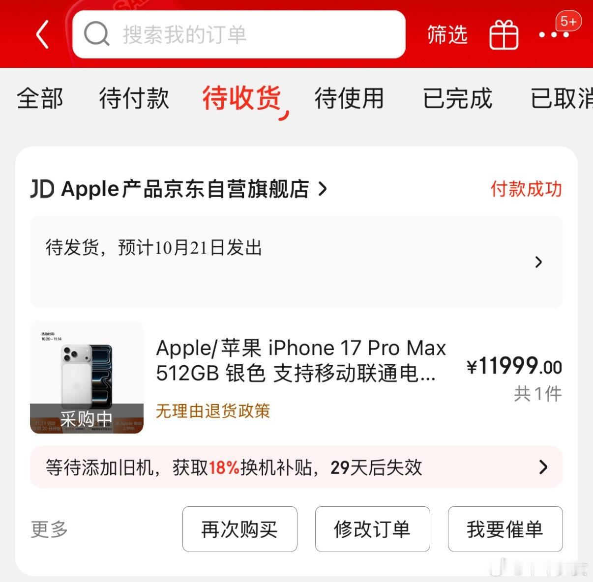 国庆下单的17proMax现在还没到![老师好][老师好] ​​​