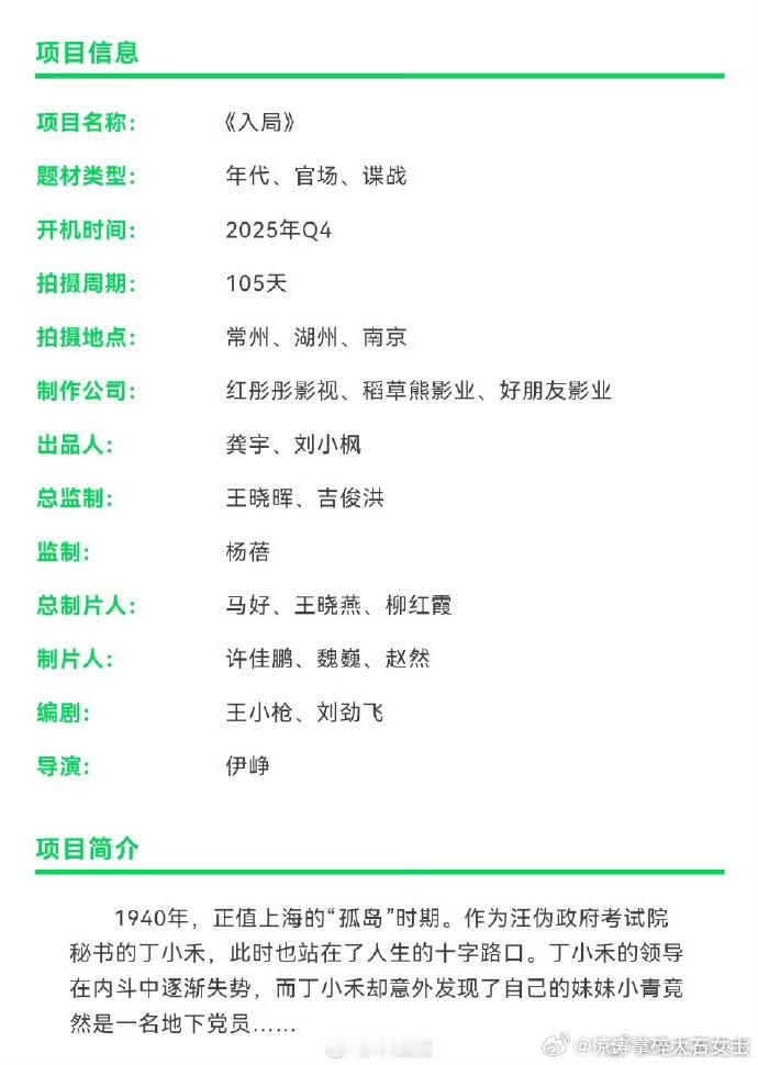 郭麒麟宋祖儿入局即将开机宋祖儿入局将开机郭麒麟宋祖儿《入局》即将开机,演绎乱世中挣扎成长的兄妹,之前综艺默契让人期待正片。