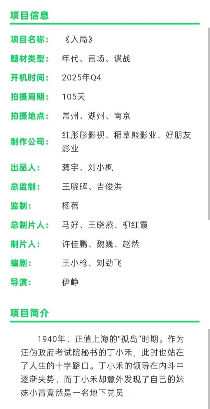 郭麒麟、宋祖儿、陈明昊、王耀庆、王鹤润、兰西雅、赵文瑄等主演《入局》组训,导演伊峥《苍兰诀》,编剧王小枪《对手》