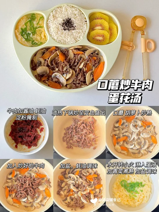 Day4:口蘑炒牛肉➕蛋花汤➕米饭➕猕猴桃