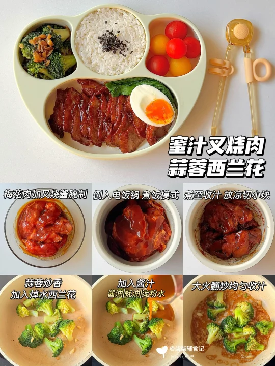 Day1:蜜汁叉烧肉➕蒜蓉西兰花➕米饭➕小番茄