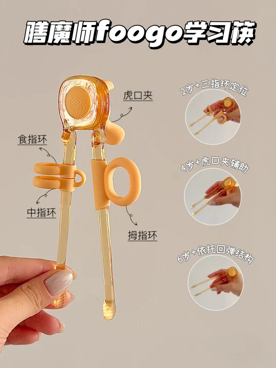✅还有分阶设计真的太靠谱了,2岁手指套进去就能轻松握住;4岁换虎口夹辅助款,锻炼手指灵活性;再大些用依托回弹结构款,和大人筷子一样顺手。她第一次用这筷子成功夹起菜的时候,眼睛都亮了,可兴奋了🥰这一套使用起来真的很顺手~家里有自主进食的宝宝,放心冲吧~