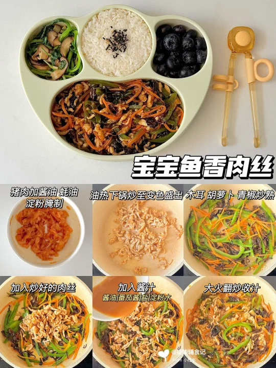 Day2:宝宝鱼香肉丝➕香菇炒青菜➕米饭➕蓝莓