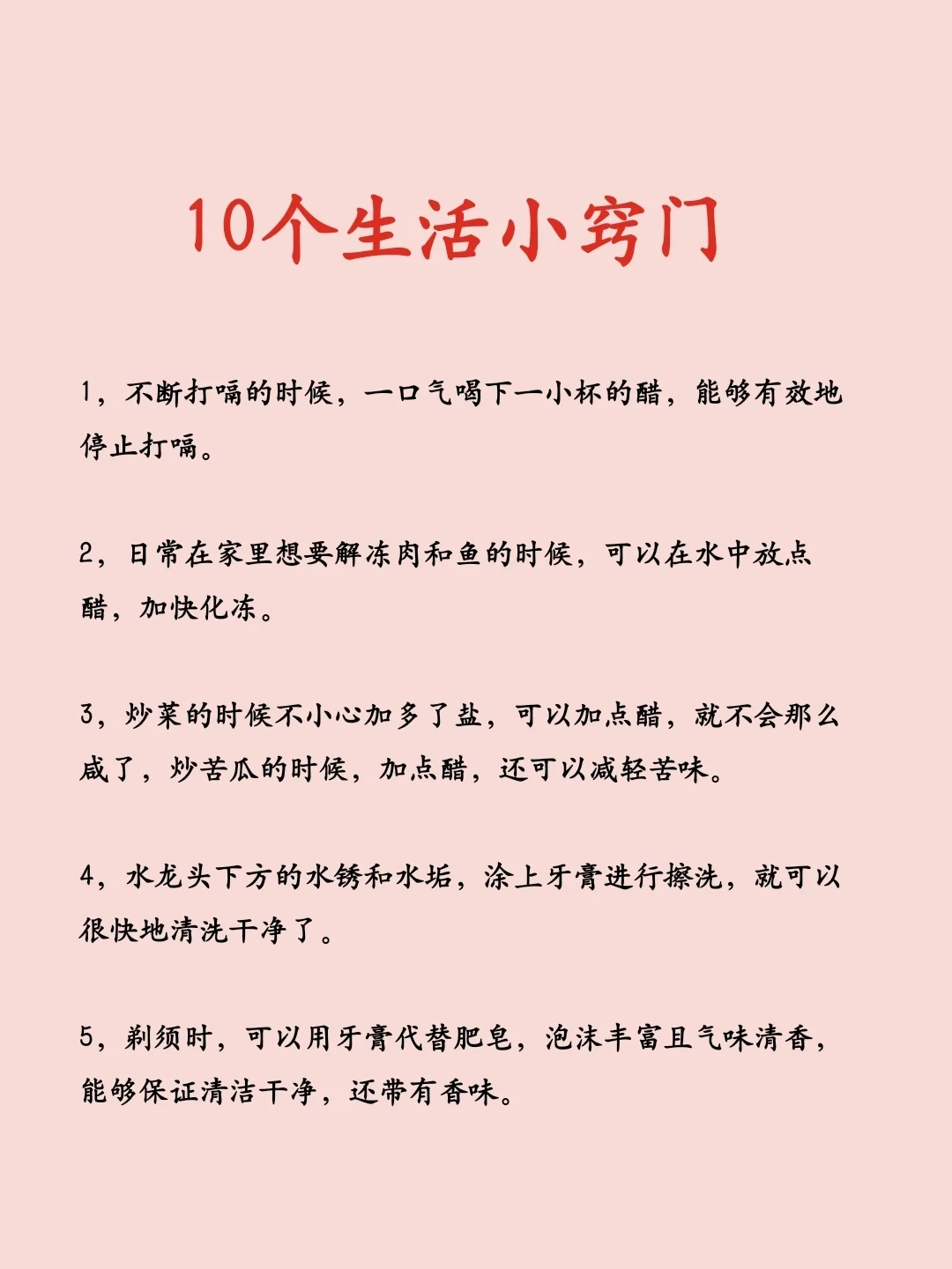 1,不断打嗝的时候,一口气喝下一小杯的醋,能够有效地停止打嗝。
