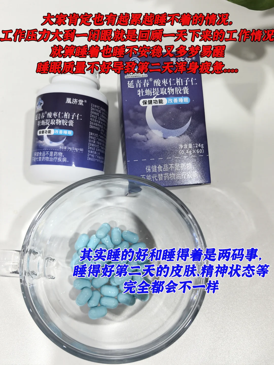 快试试凰济堂酸枣仁胶囊 纯草本精粹,特别温和 酸枣仁、柏子仁、珍珠粉、五味子等 每日2次,每天睡前吃3粒 睡得好睡得快的同时还能养成好眠体质🌙💊